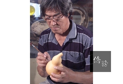 天廬工作坊裡所有的創作品都是由負責人江宗慶老師一手打造出來的。江宗慶老師原本在花蓮任教,教的是電機科,創作葫蘆一開始是因為好友才接觸彩繪葫蘆藝術,從單純的興趣到最後變成了大師,完全是靠自己摸索而來,從沒學過書法、也沒學過美術,在花蓮又找不到可以指導葫蘆雕的老師,江宗慶自己看書臨摹字畫,無師自通,靠著一份對葫蘆的熱愛,把葫蘆推向藝術化,創作了千百種風貌的葫蘆作品,讓失去了實用性的葫蘆,得以在工藝領域裡占有一席之地。
