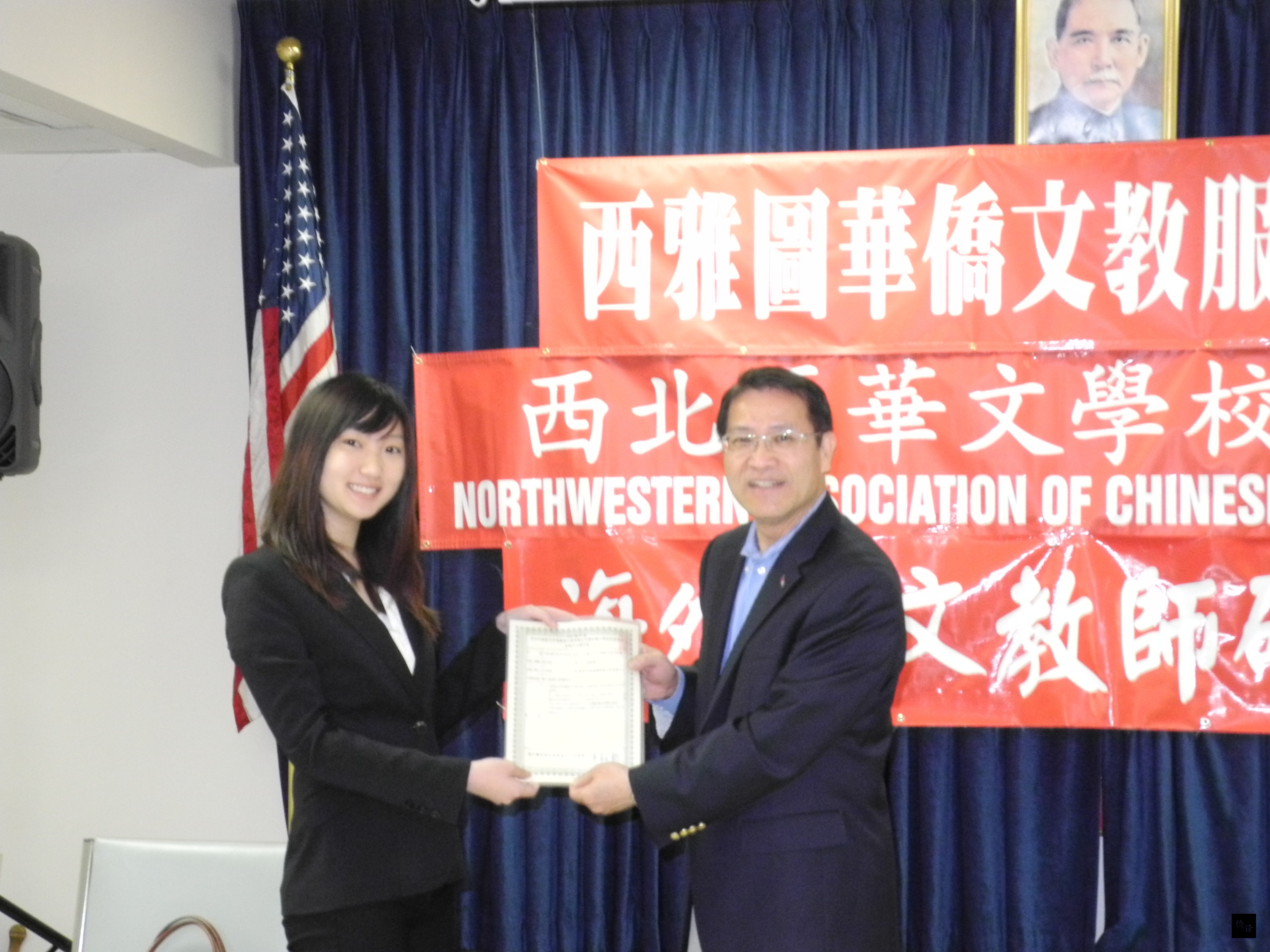 西雅圖僑生王利婷申請回台就讀,經海外聯合招生委員會審查後,日前分發至台大醫學院醫學系,並獲得「教育部獎勵海外優秀僑生回國就讀大學校院獎學金」。9日在西雅圖僑教中心由駐西雅圖辦事處處長廖東周頒獎,中心主任尤正才、西北區華文學校聯誼會會長劉政賢、僑務顧問林昭宏及多所中文學校校長與老師出席觀禮。