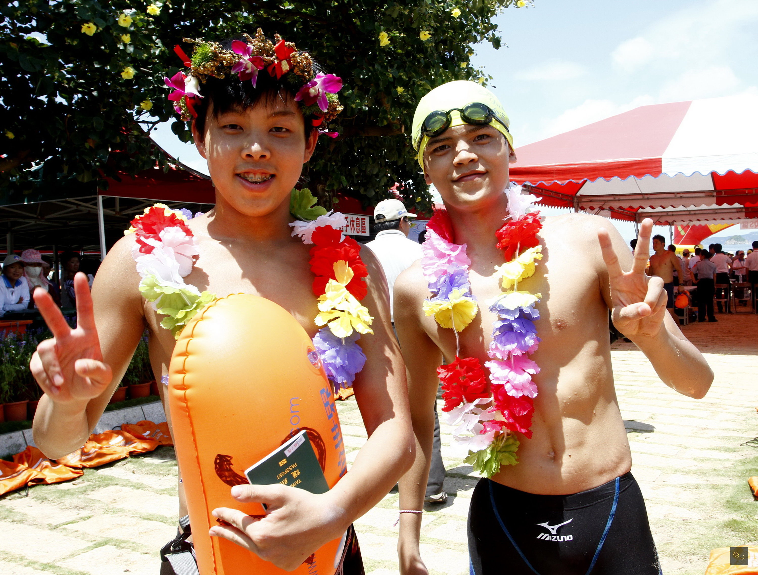 2011金廈海域泳渡─全球華人接力公開賽29日舉行,兩岸78隊156名選手競速7公里海域,台灣蘇子傑和鄧宇恩聯手稱王,大陸鄭倩倩和楊丹丹搭檔封后。