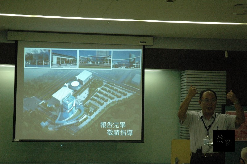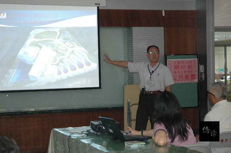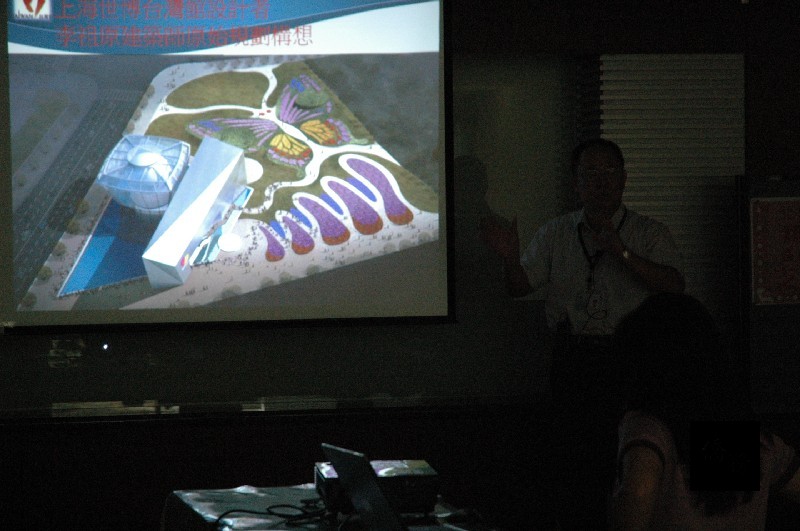 柳劍山表示,「世博台灣館」是由世界知名的建築師李祖原所設計,而台灣是蝴蝶王國,所以由空中鳥瞰的「世博台灣館」景觀,也將呈現出美麗蝴蝶的造景,現場民眾看了簡報及影片說明,不禁表示驚嘆。