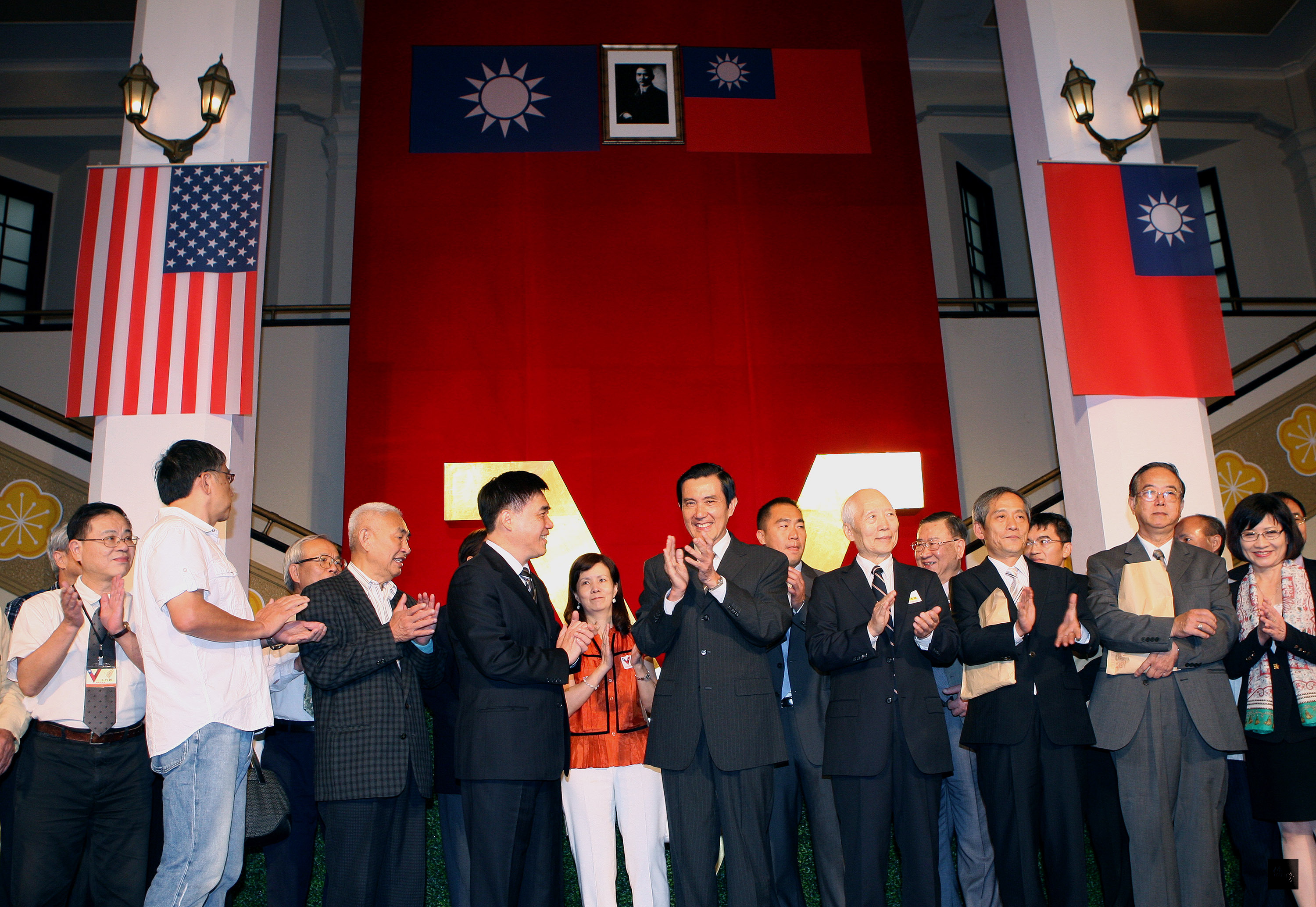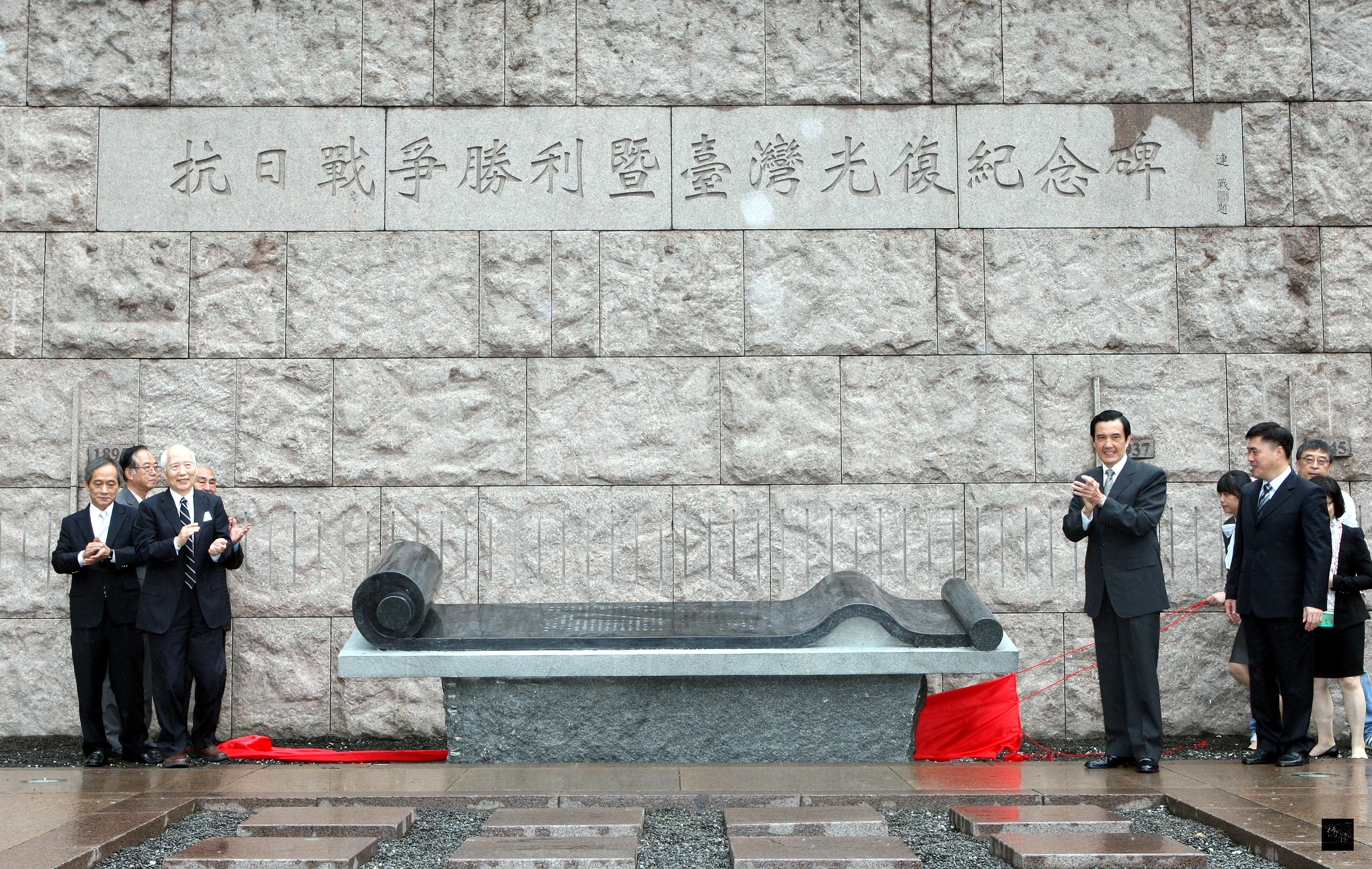 總統致詞完畢後與台北市長郝龍斌、抗日先烈吉星文以及台灣抗日將領林祖密、李友邦的遺族後裔一同為「抗戰勝利暨台灣光復紀念碑」碑文揭幕,見證台灣光復的艱辛歷程。隨後,總統參觀「慶祝台灣光復—100年來台灣地方自治特展」,回顧我國民主實踐歷程,並與郝龍斌市長就展場之選舉文宣品實地模擬投票作業,以具體行動表達對民主自治的肯定。