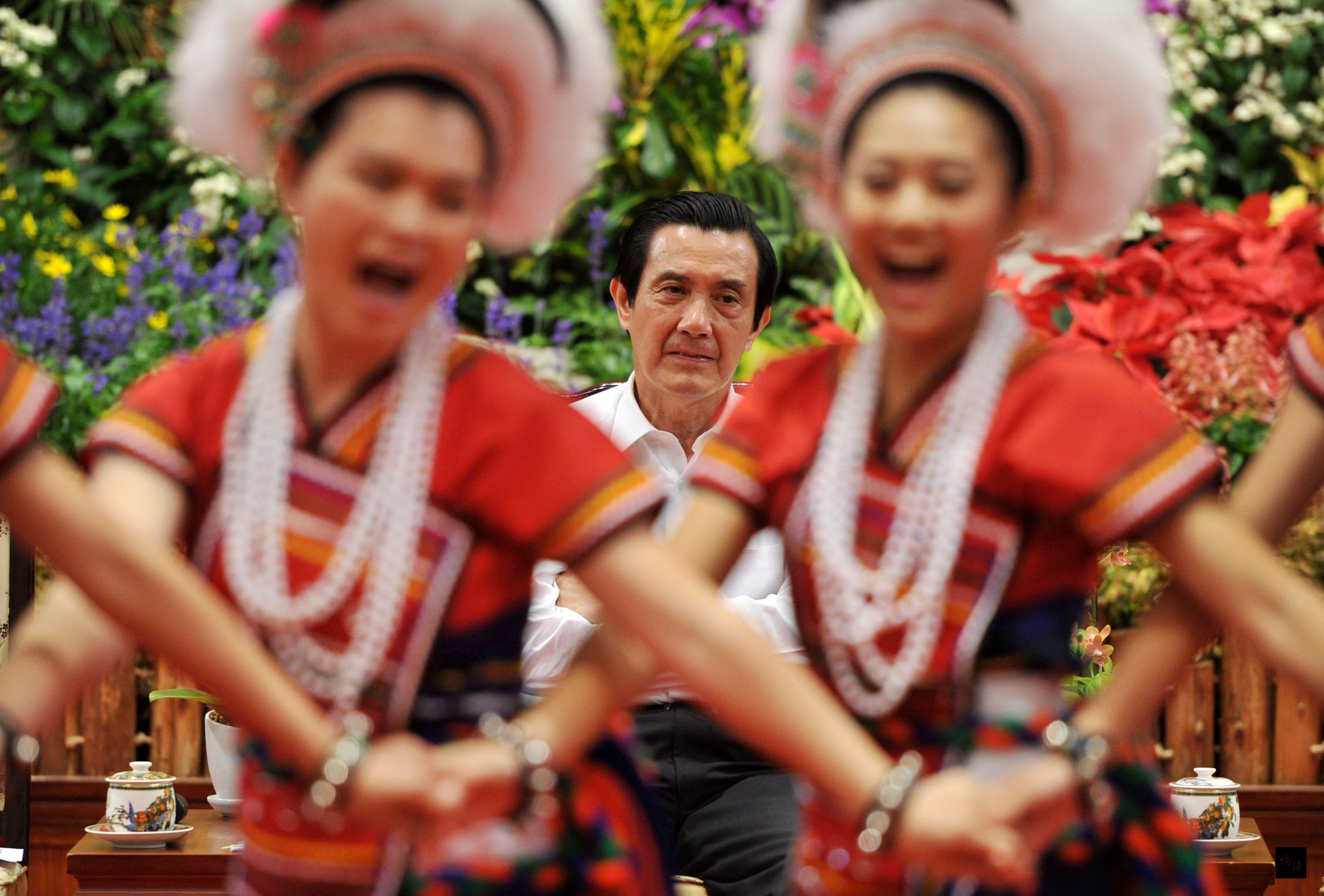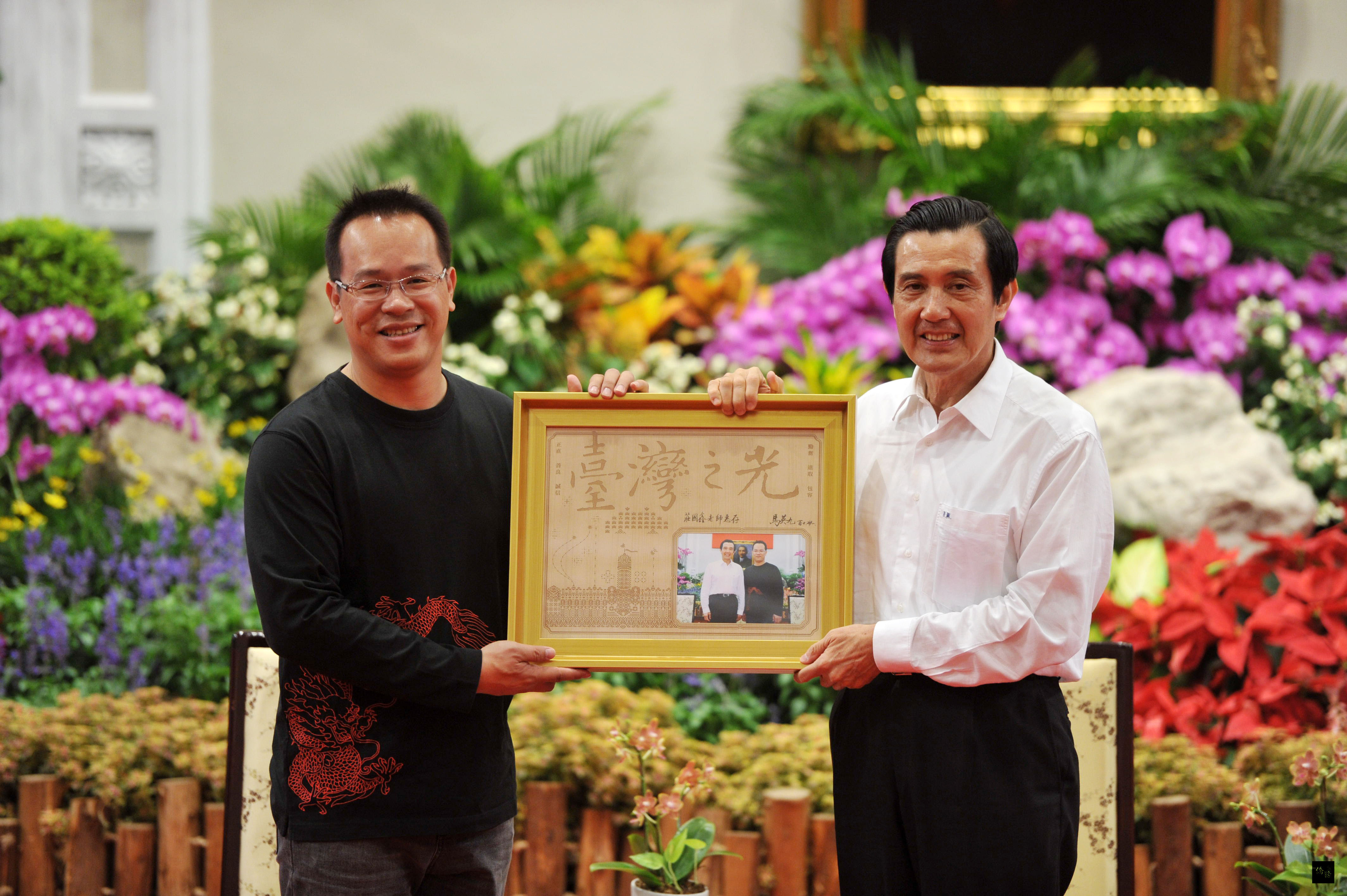 馬總統在總統府接見台灣之光系列人物:原住民傳統文化創新者莊國鑫,總統知道「莊國鑫原住民舞蹈實驗劇場」成員包括阿美族、魯凱族及太魯閣族,致詞時還特別用這三族的問候語問好。