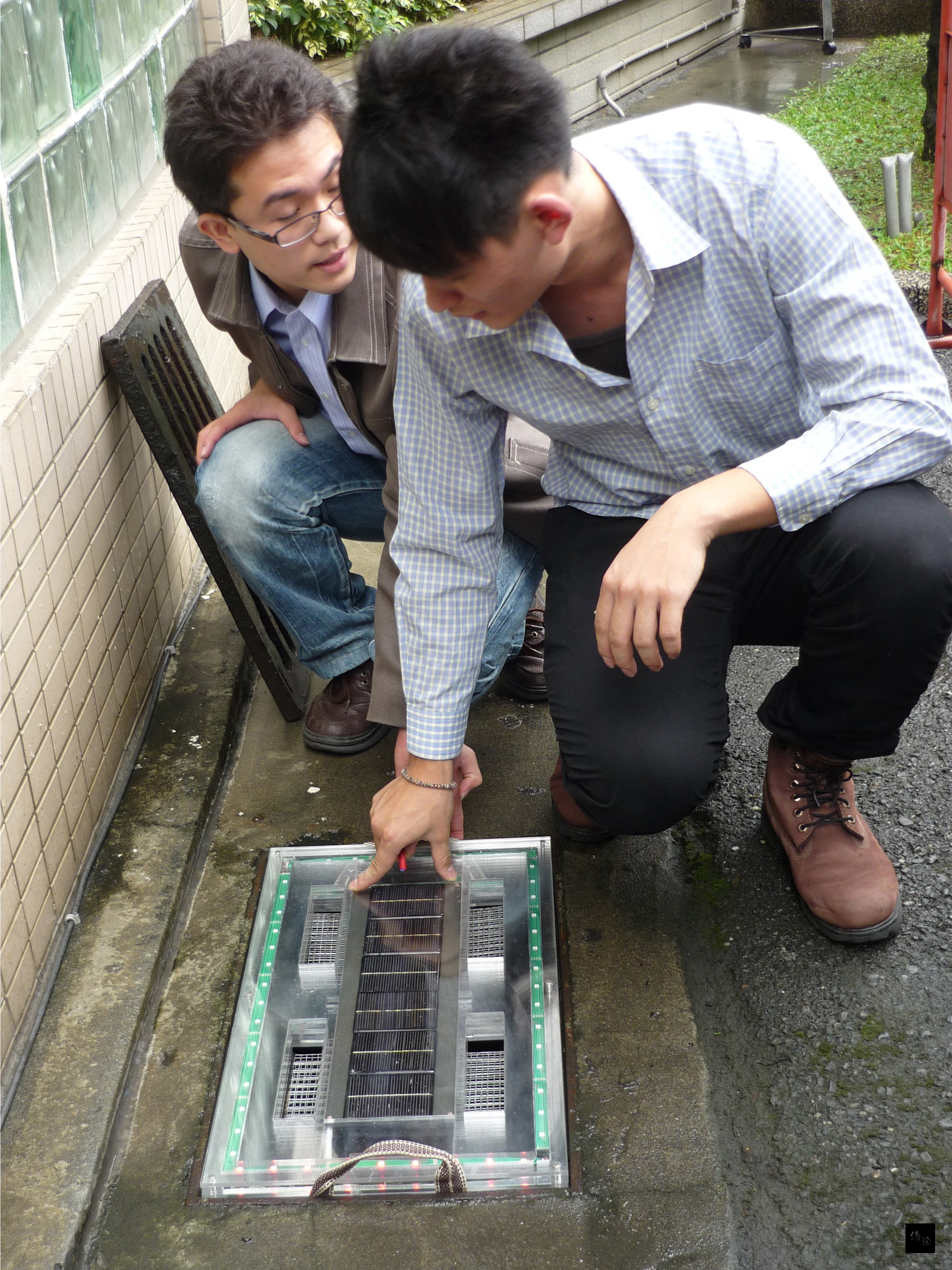 陸克強表示,他們以高雄市登革熱疫情嚴峻發想,要找出不讓病媒蚊幼蟲羽化後飛出水溝的辦法,途中再衍生出太陽能蓄電、LED燈警示及美化等。