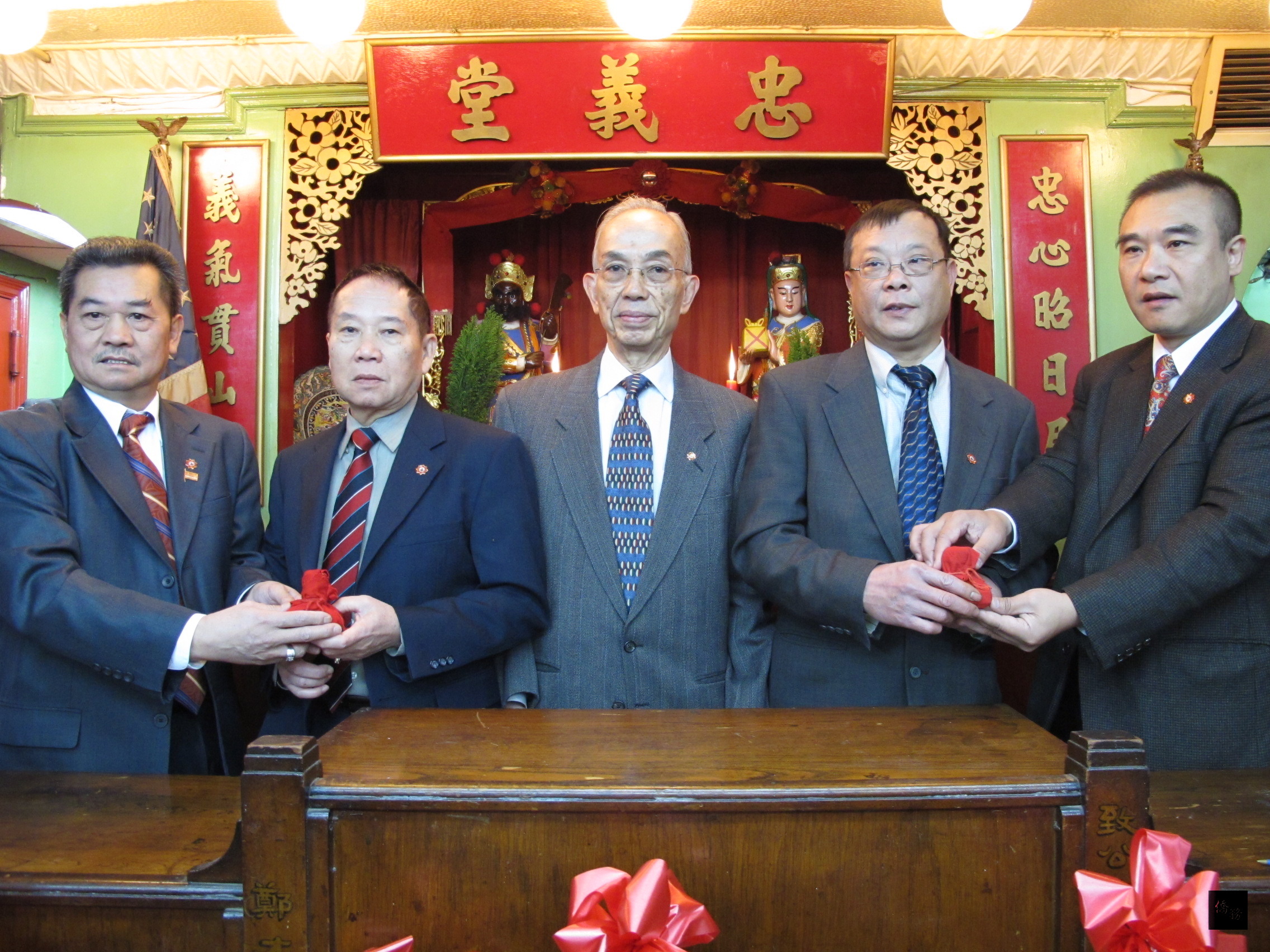 紐約洪門致公堂日前舉行2012年新舊職員交接典禮,在美國洪門致公總堂總監堂李柱燊、總理李永耀及司徒健的監誓下,新任主席李志聯、伍新傑及職員宣誓就職。