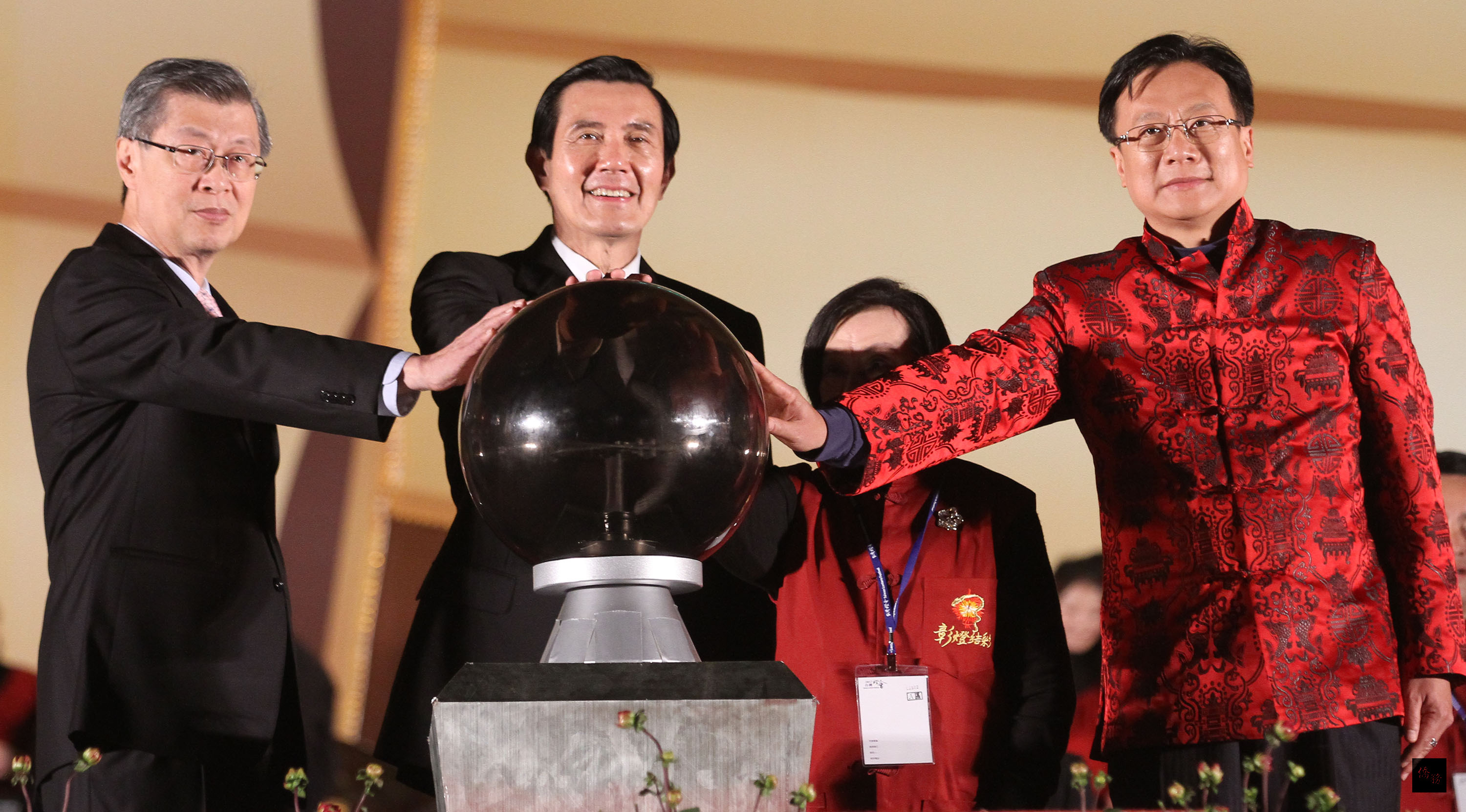 馬總統等人致詞結束後,隨即手按水晶球象徵啟動龍翔霞蔚主燈,在全場觀眾的倒數聲中,龍翔霞蔚主燈射出七彩光芒,加上乾冰製造的雲霧特效,金龍手握龍珠在雲端飛躍,展現龍翔霞蔚的意境。