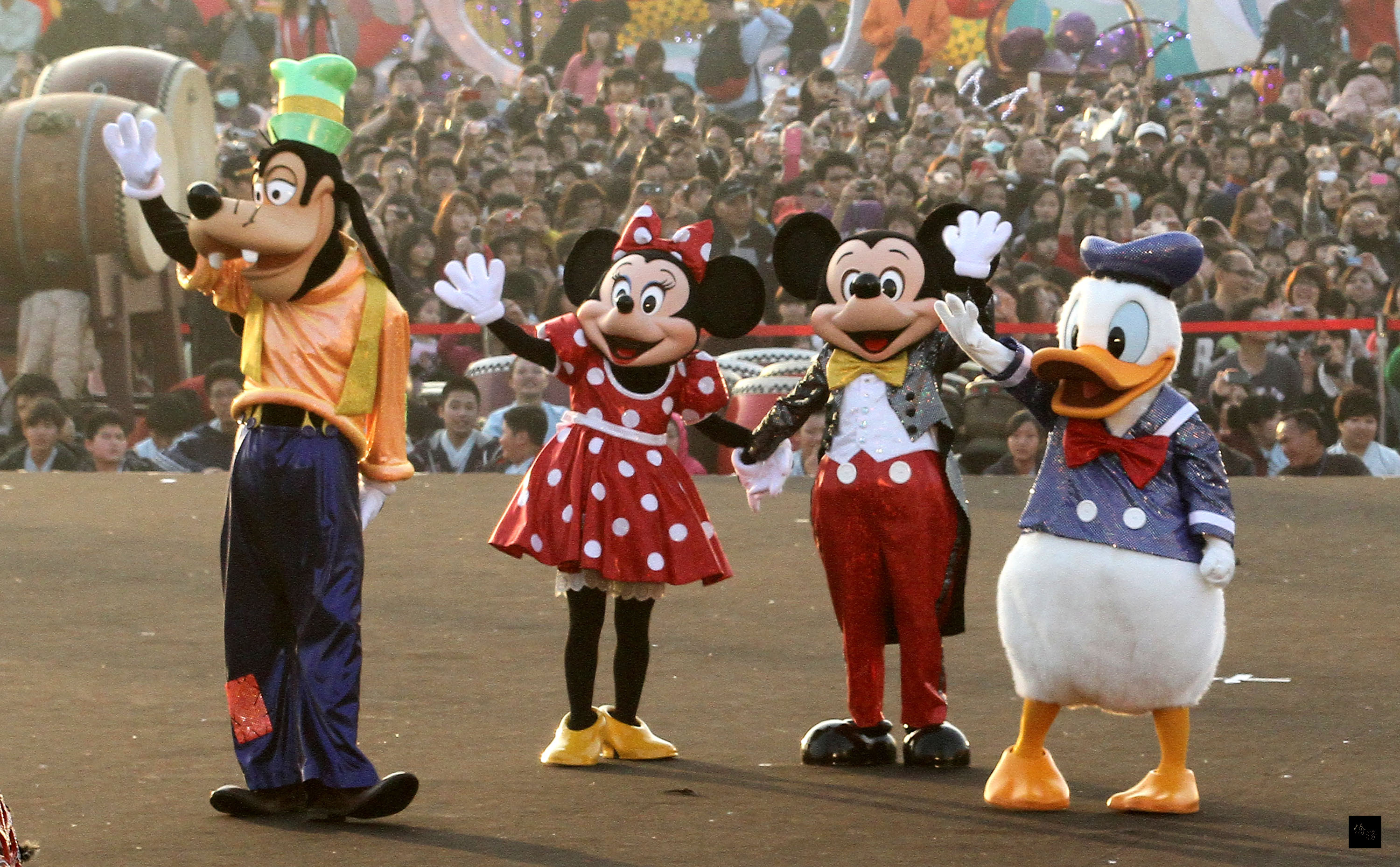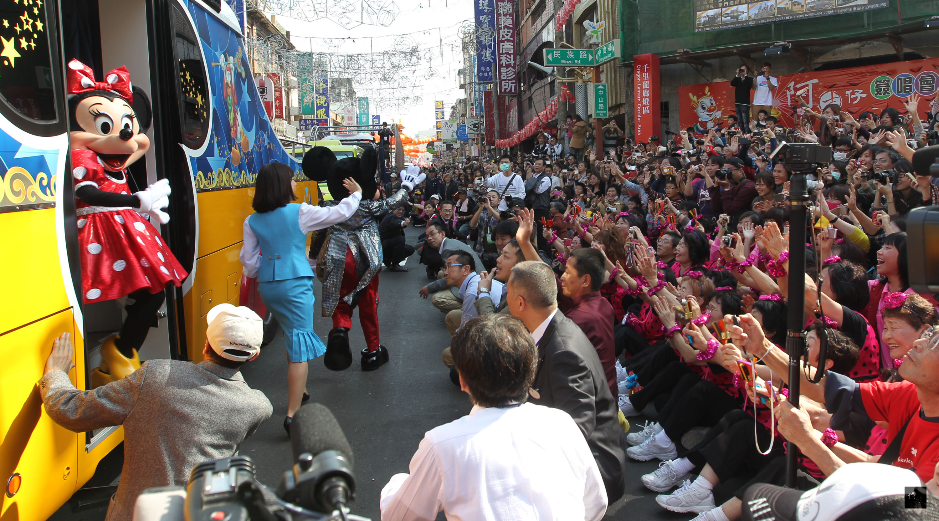 在開幕典禮開始前,為了看迪士尼卡通人物在開幕式的演出,數萬人塞爆鹿港鎮立體育場,顯示米奇、米妮、唐老鴨的魅力無窮。
