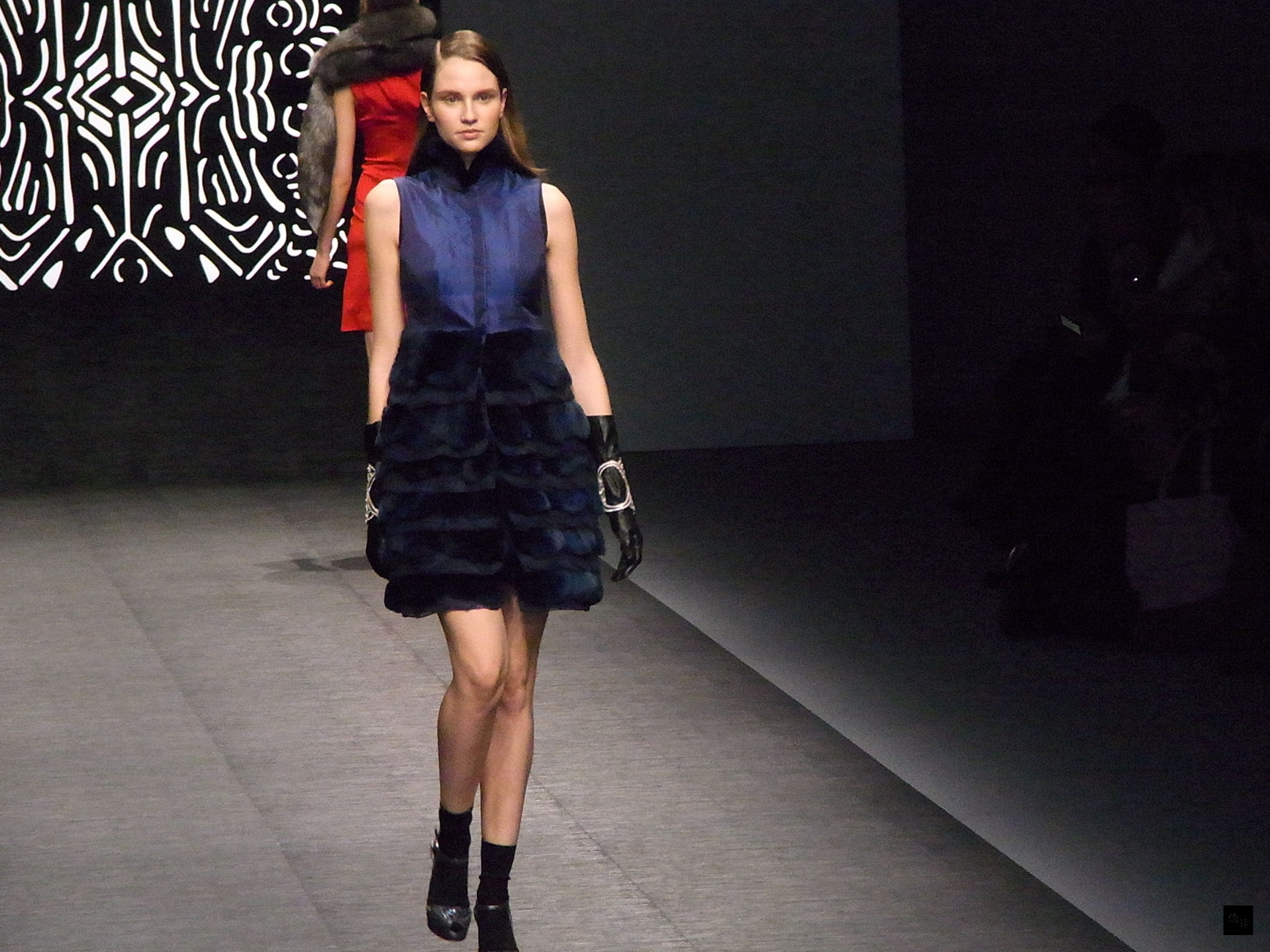 2012/2013秋冬設計有夏姿慣用的紅色,但藍色和黃色也格外凸顯,用色鮮豔。材質運用上,包括皮草、蕾絲、烏干紗、金屬混紗,以印花、刺繡、或拼接手法,給予苗族傳統紋飾另一種新穎時尚風貌。