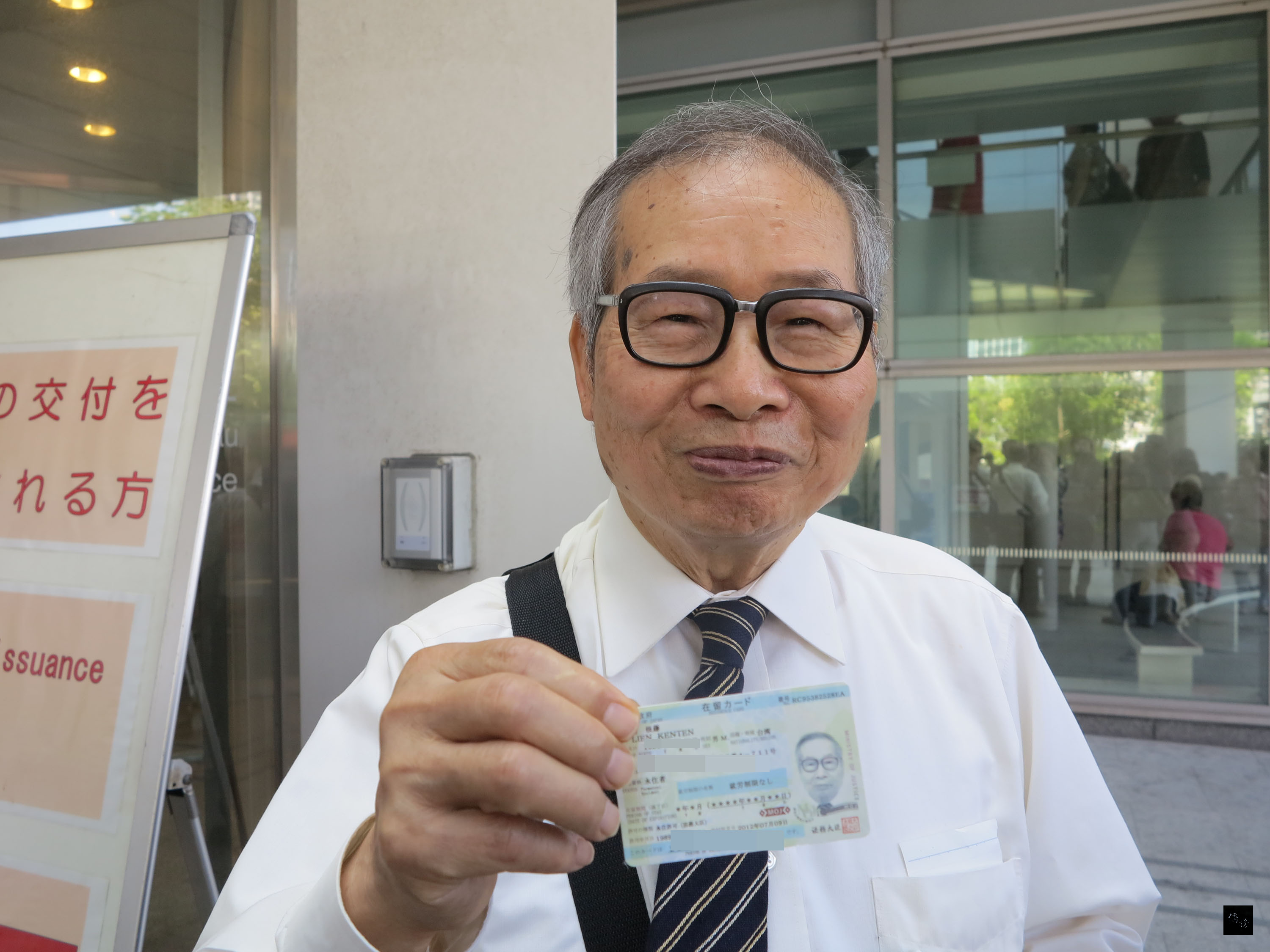 拿到居留卡,看到上面的「國籍‧地域」欄寫著「台灣」兩個字,他對著台日媒體說:「領到這張很高興,台灣人的身份被我拿回來了」。