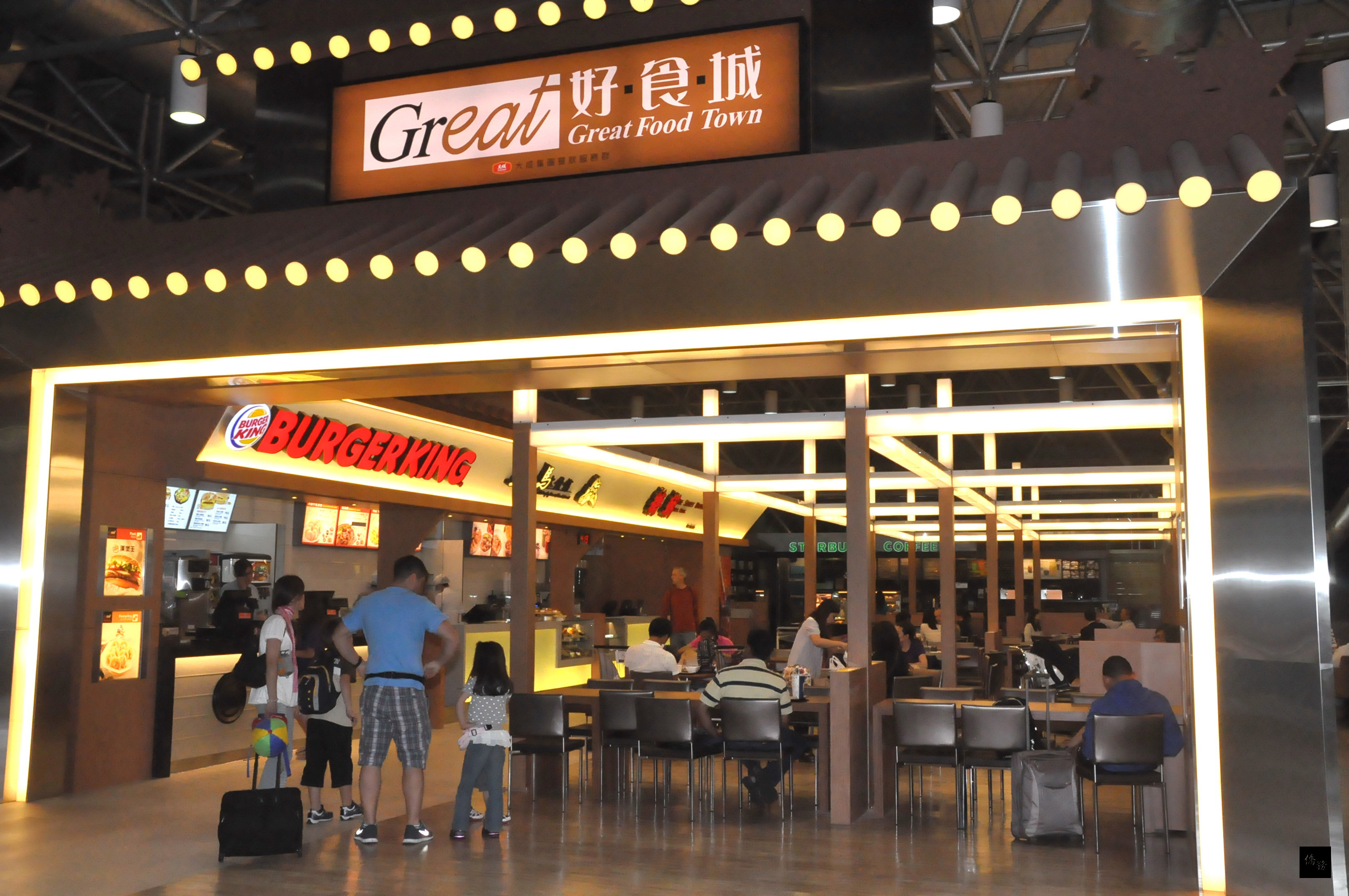 在空間設計上分兩大主軸,管制區內4樓,展現廟會之美,大型廟會牌樓矗立,有道地中式小吃如水餃、鍋貼、捲餅、蘿蔔糕、小籠湯包、廣東粥、煲湯、點心等。