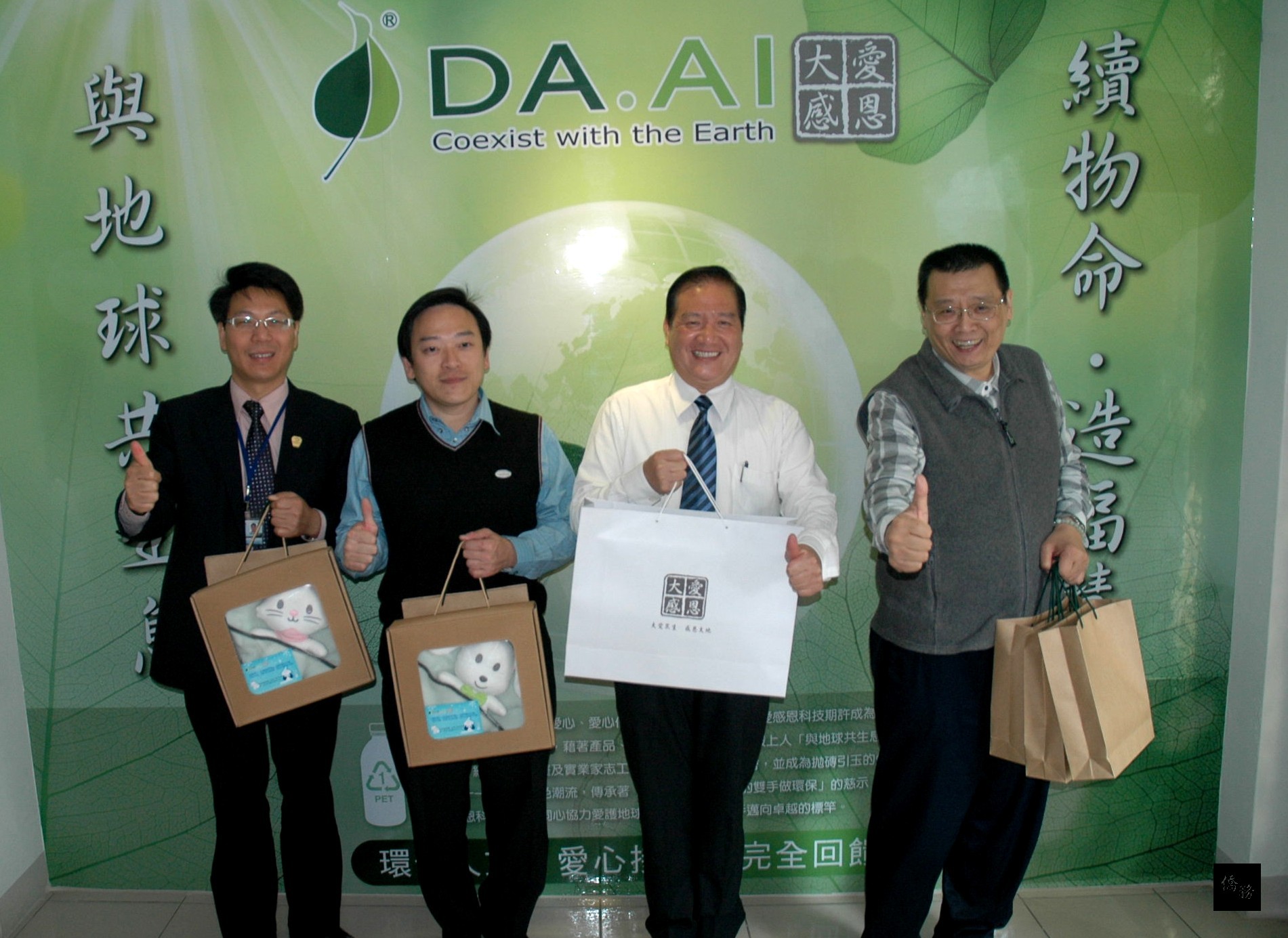 許市長在大愛感恩科技執行董事李鼎銘引領下,參觀概念館內陳設之成品,觀賞開發營運的紀錄片,看到每年把營業額全數捐供慈濟功德會的影像,感佩讚揚從環保回收到環保科技的推動,證嚴法師的大愛傳遞,讓人類更懂得珍惜資源、愛護地球。