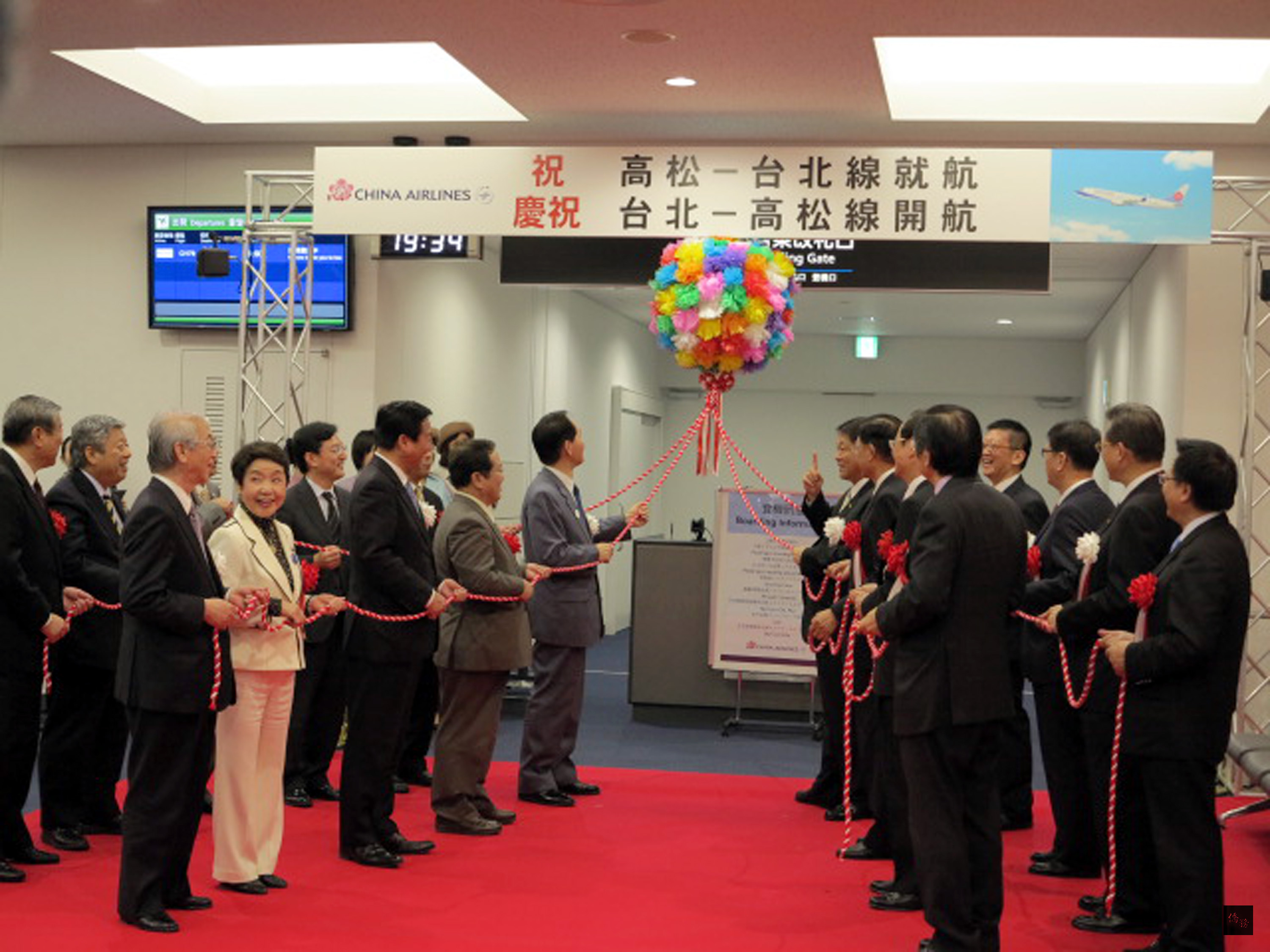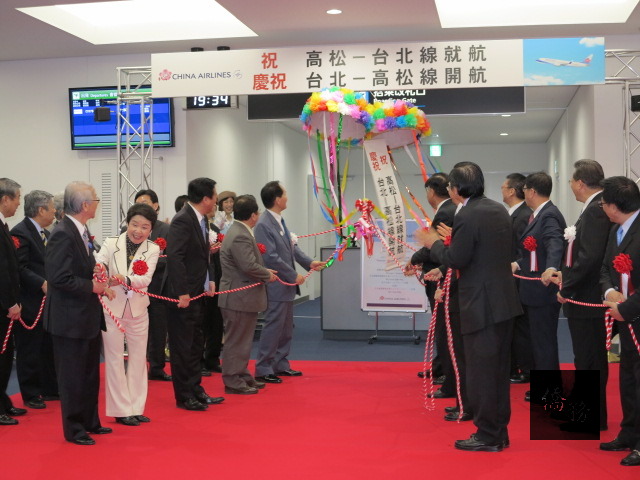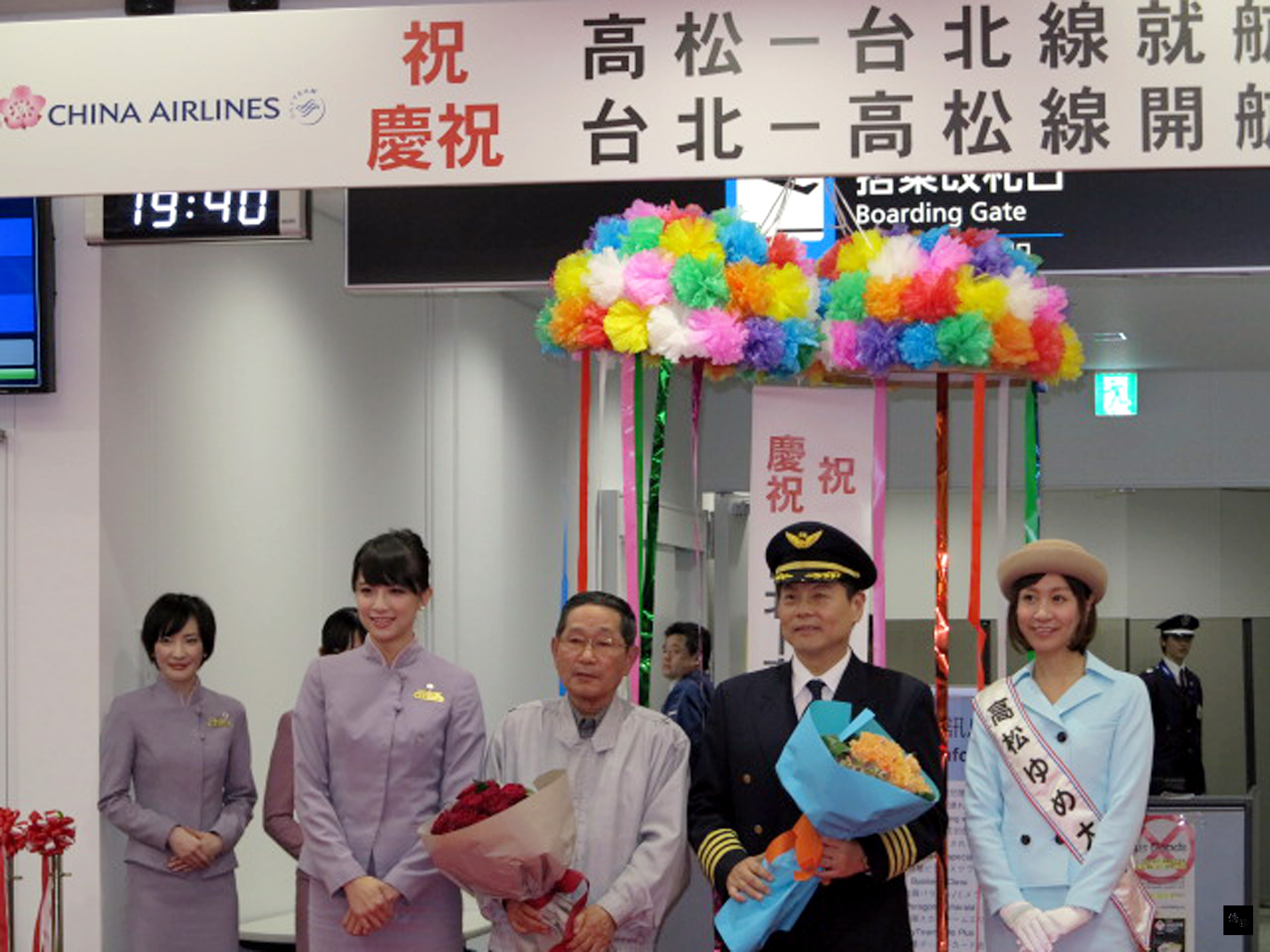 華航在高松機場舉辦桃園到高松之間首航典禮。在主持人喊「3、2、1」後,綵球綻放出祝賀首航的字幕。典禮中有香川縣知事、議會議長等日方政商人士出席。總統府資政江丙坤夫婦、華航董事長孫洪祥等搭乘首航抵達高松的人士也列席。
