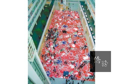 但林明弘的國際DNA並沒有讓他落入玩老梗的窠臼裡,朋友知道他擅長以花布創作,送了塊韓國花布給他,林明弘為古代韓國花布賦予全新生命。到日本金澤美術館辦展,他跑去東京布料批發市場,挑選當地花布,畫滿整面牆。