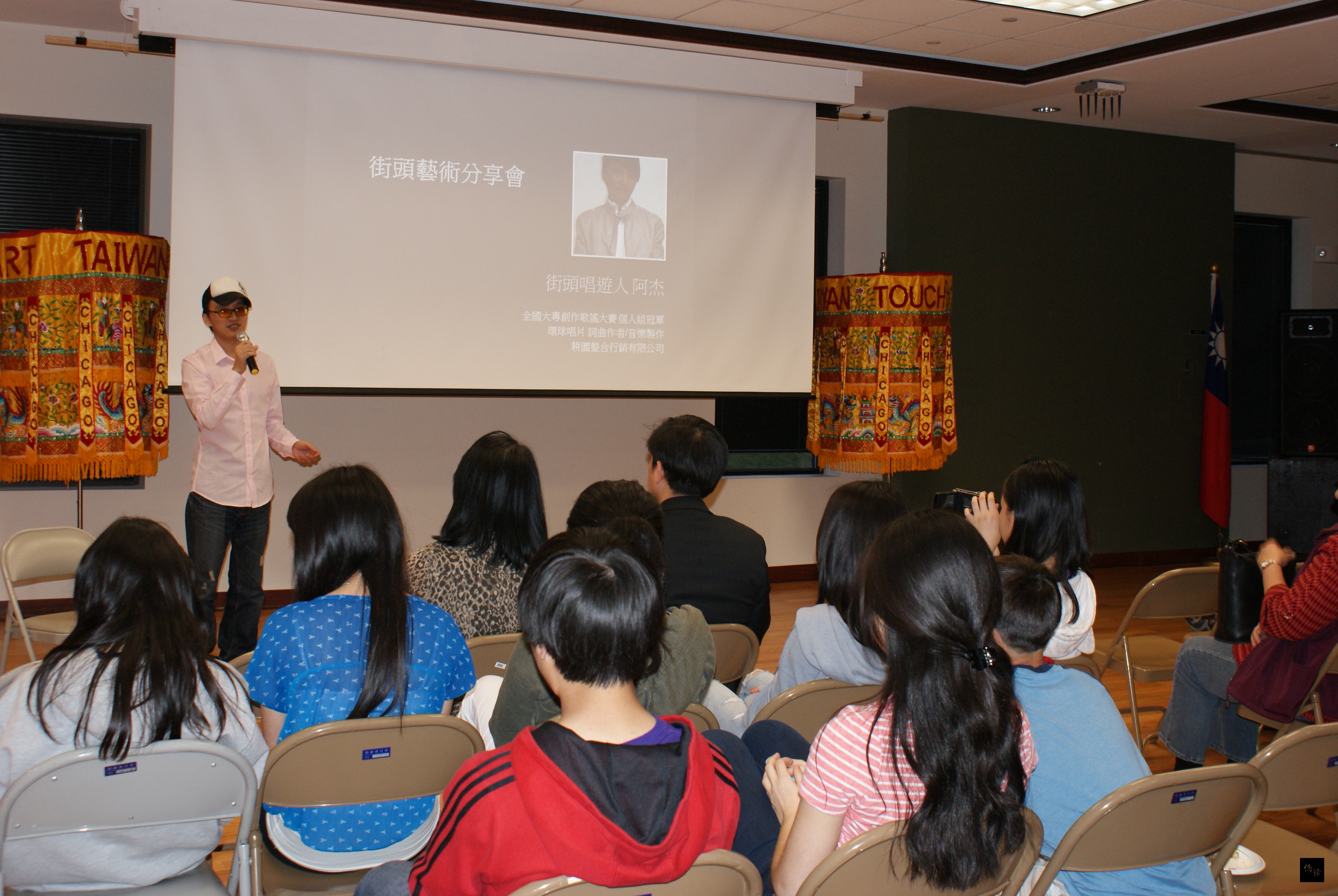 徐志杰大學時代就開始在淡水街頭表演,他遊走日本、美國、歐洲看各地街頭的表演,認為台灣有最溫暖的街頭文化。他在講座中介紹台灣的街頭音樂、街頭文化、街頭藝術。