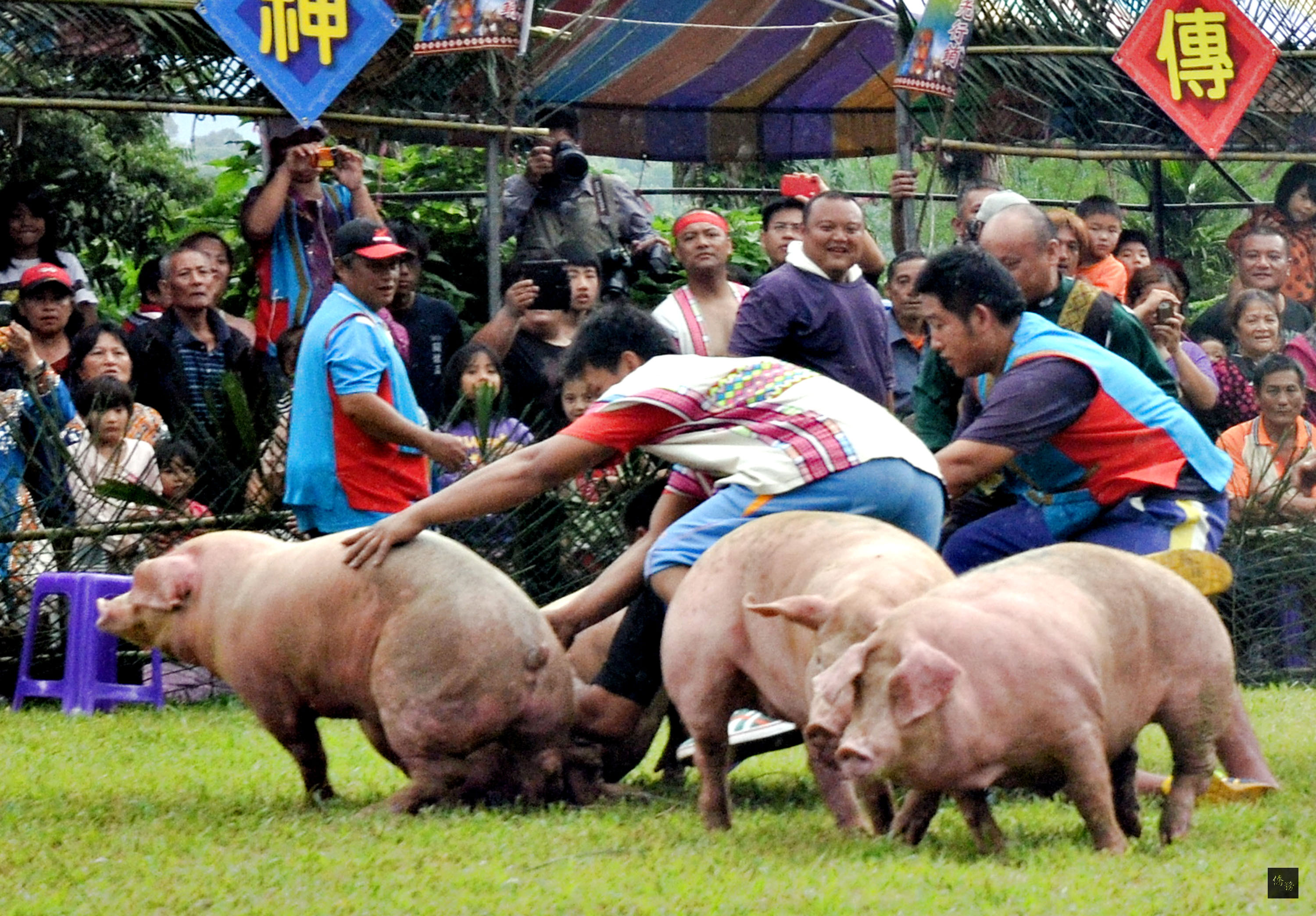 布農族射耳祭傳統抓豬競賽,引起動物保護團體批評,台東縣延平鄉射耳祭4日下午抓豬競賽如期舉行,吸引觀光客,動保人員也到場關切。