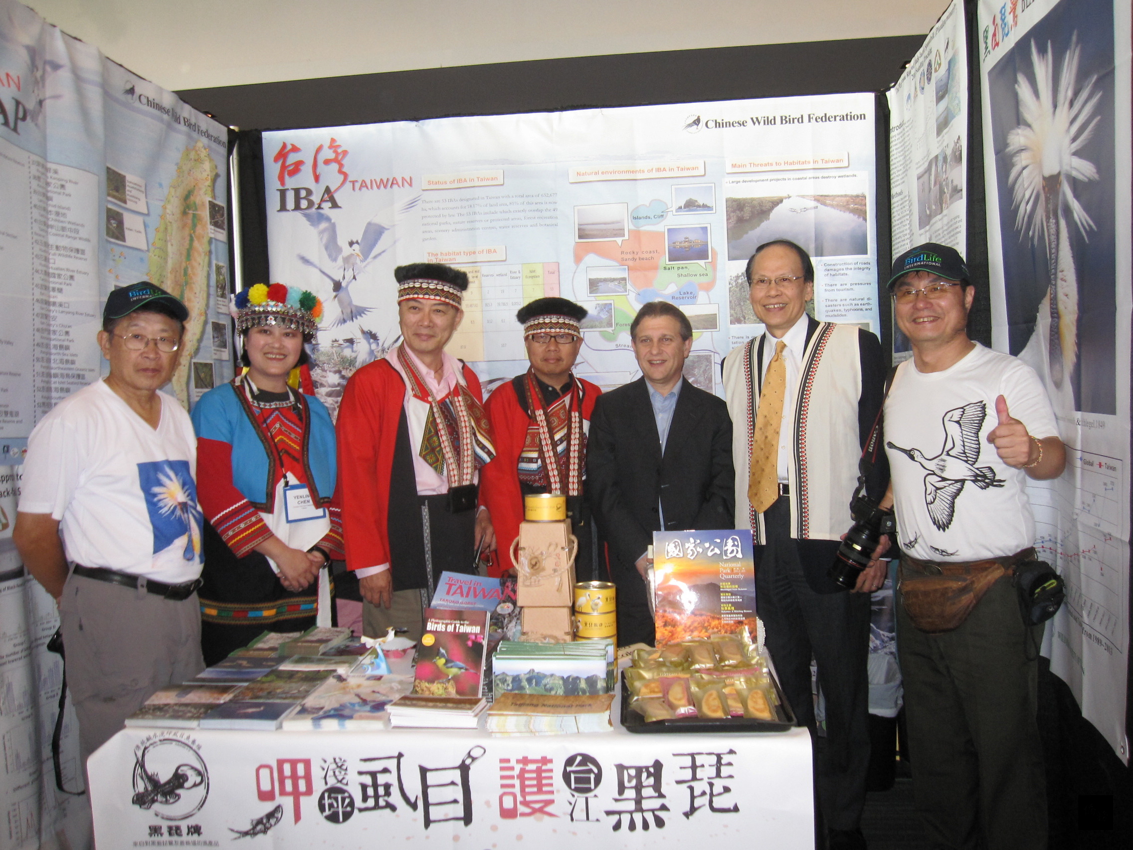 台灣在這次國際鳥盟世界大會上大出風頭。除了在22日的頒獎典禮上受到高度讚譽外,20日晚間各會員保育攤位展上成為受注目的焦點,5名代表團成員穿著醒目的台灣原住民傳統服飾,與各國代表分享台灣對鳥類與生態保育的經驗與成果。