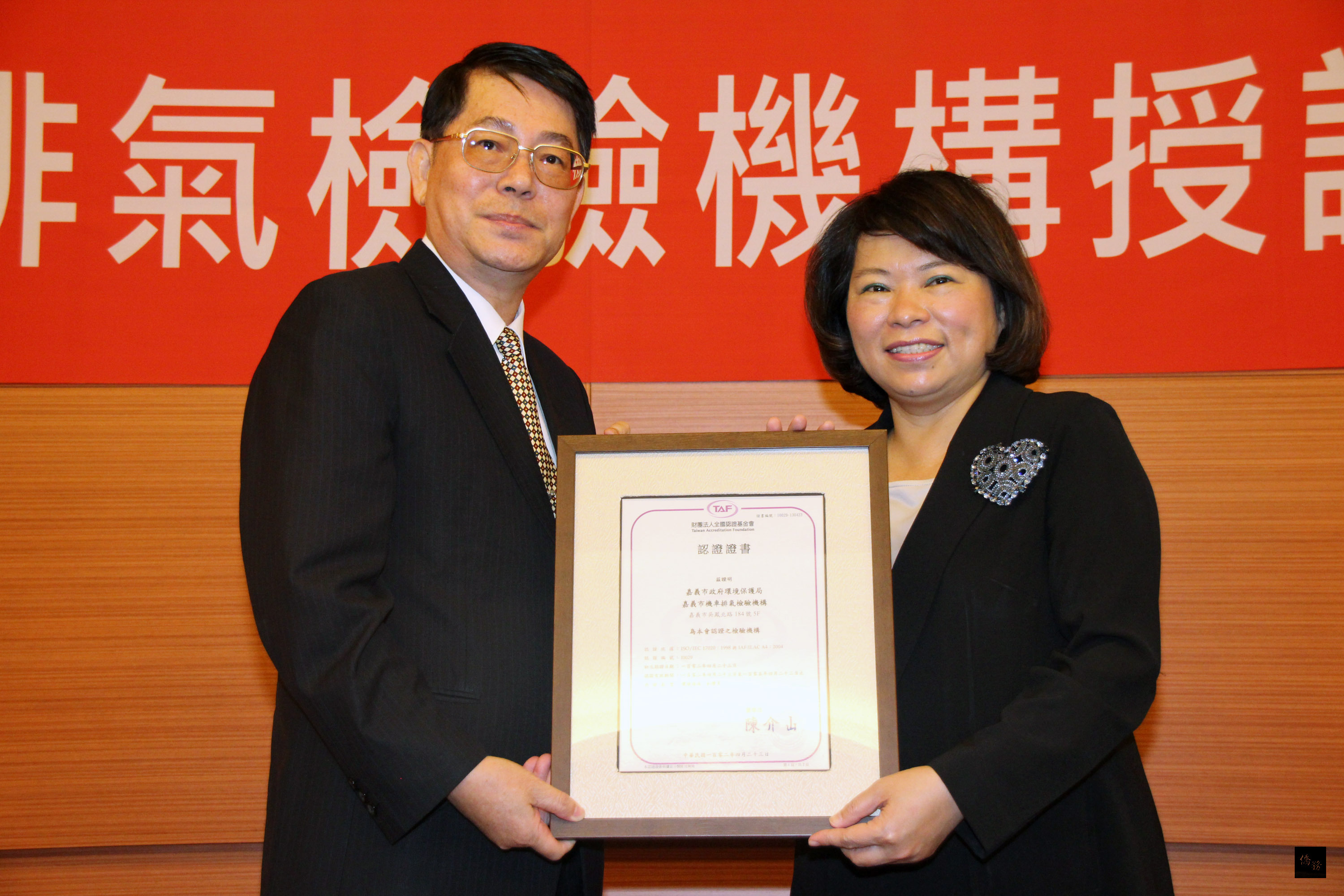 市府表示,嘉義市環保局是在中興大學機械工程研究所教授盧昭輝指導下,於4月23日獲得全國認證基金會通過,成為台灣第一家TAF機車排氣檢驗國際認證機構。