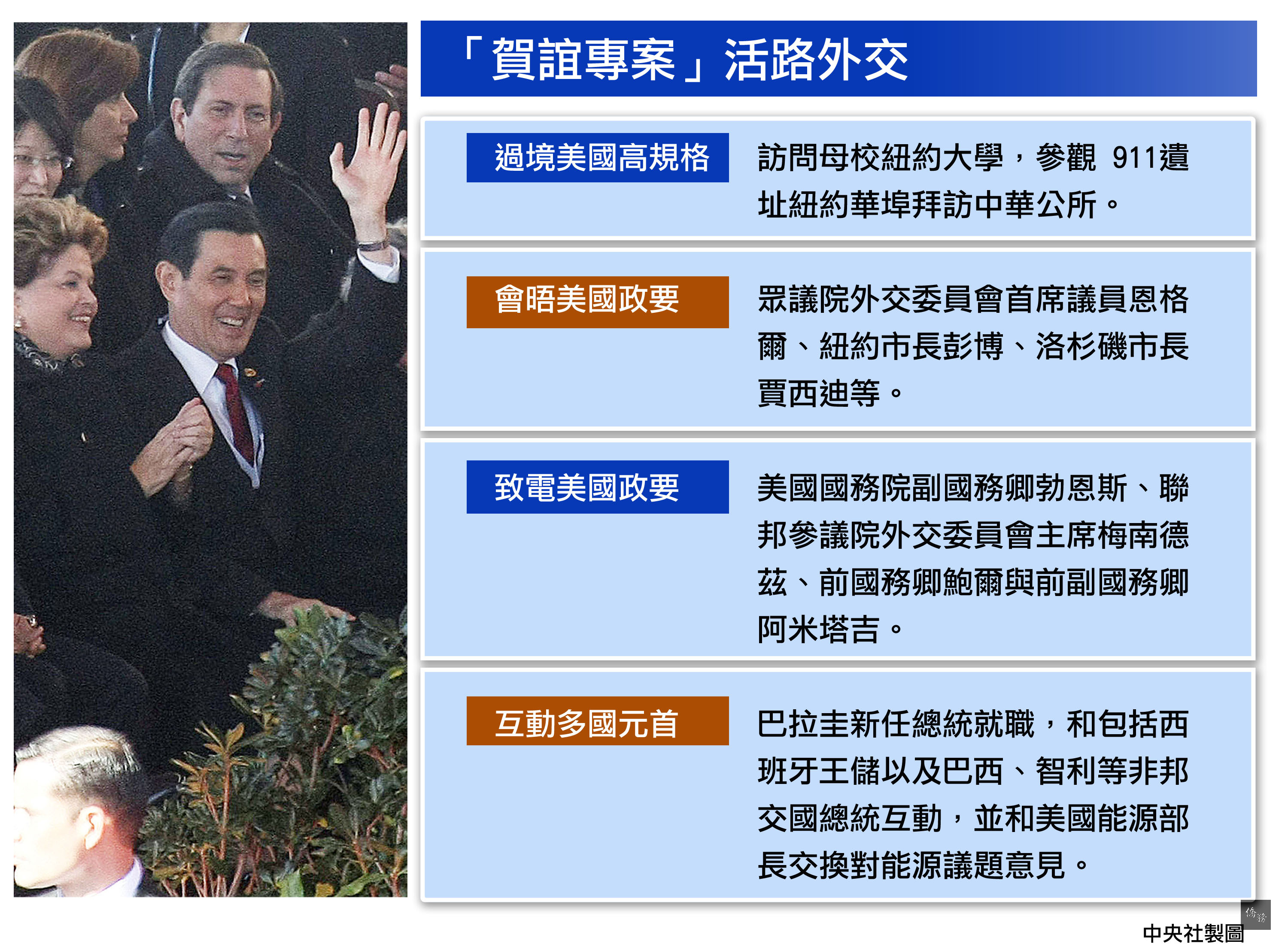 馬總統此行締造多項「創新」,不但落實台灣的國際角色,能見度大幅提升,更務實推動台美關係,證明活路外交奏效。