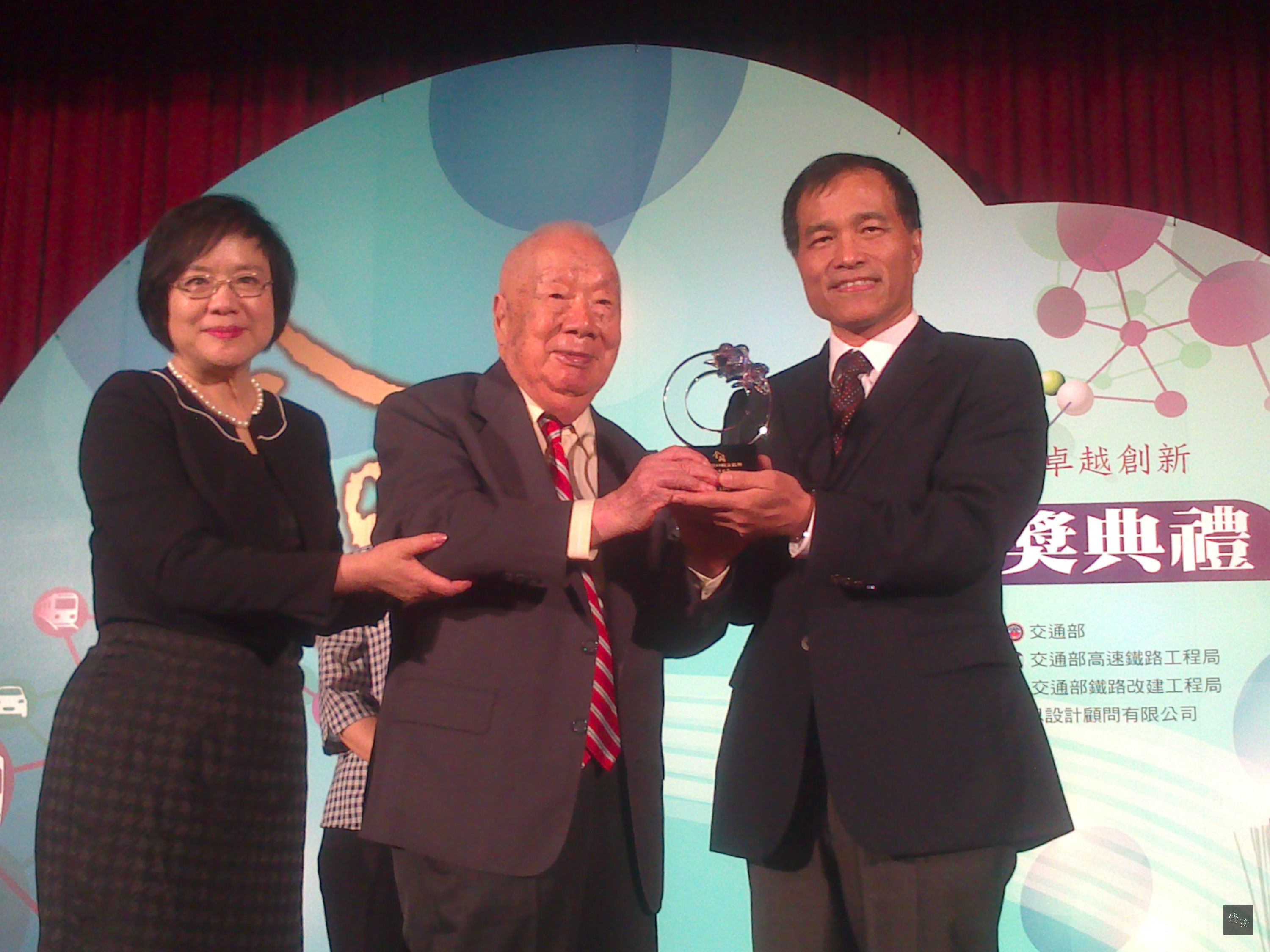 交通部20日舉行第14屆「金路獎」頒獎典禮。推動台灣第1個鐵路地下化工程的前台鐵局長董萍,獲頒終身成就獎。