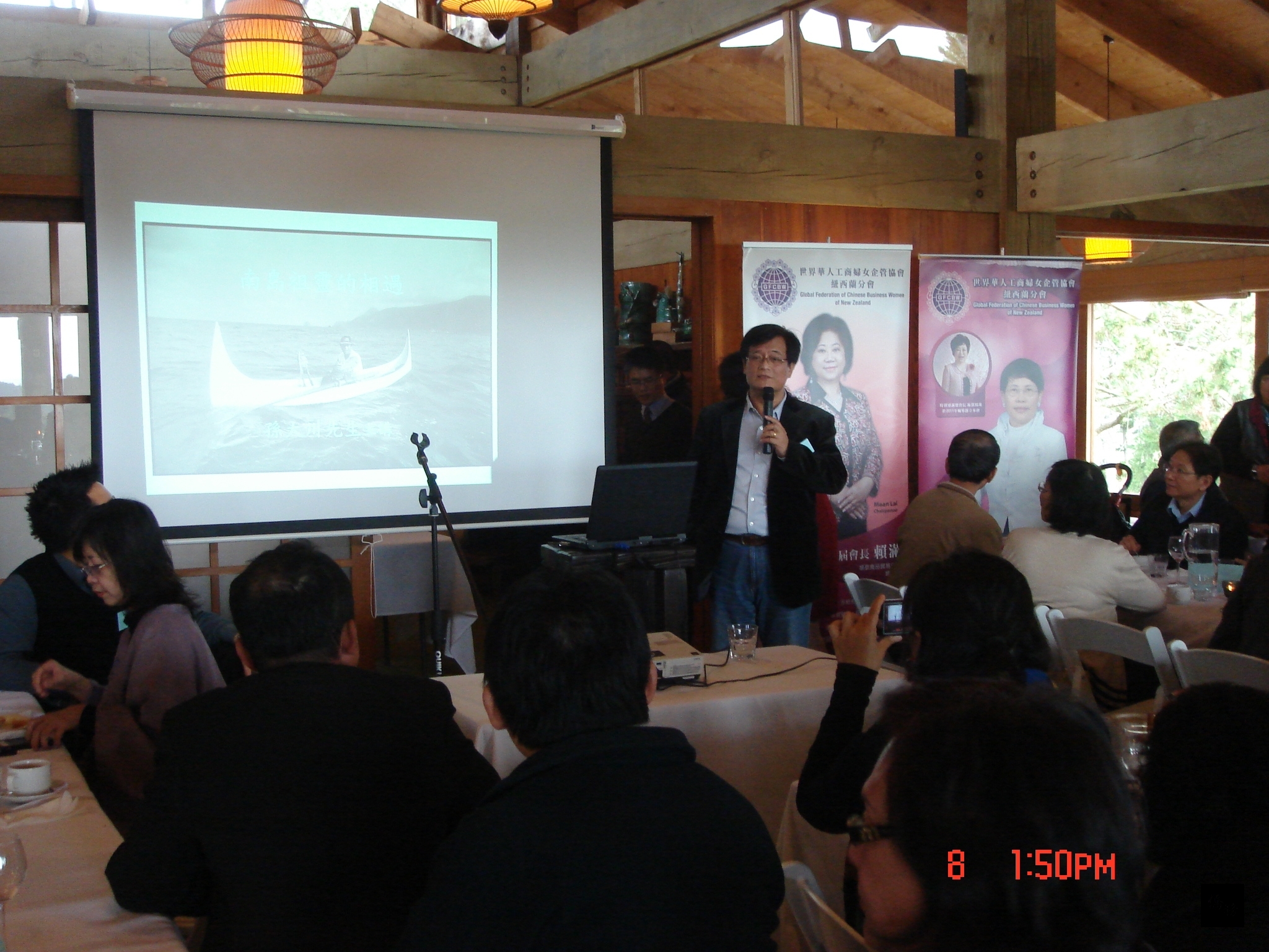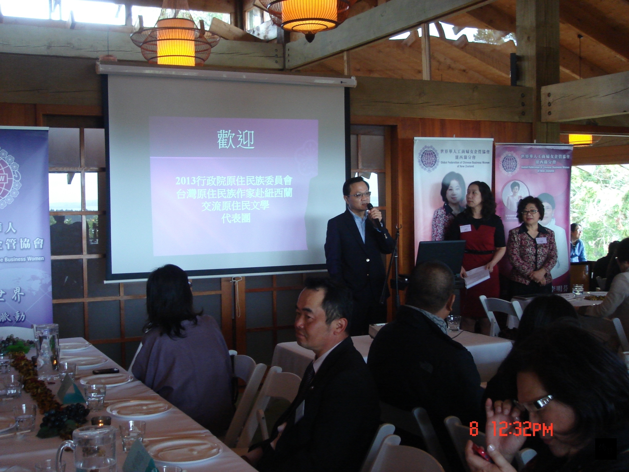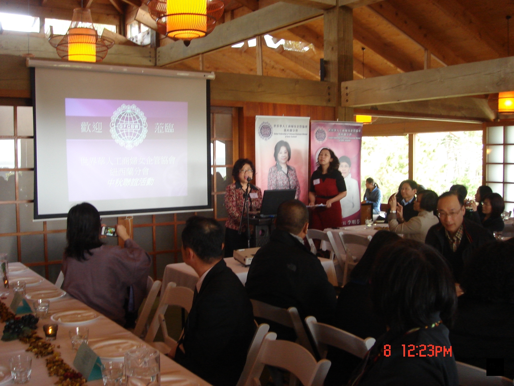 世界華人工商婦女企管協會紐西蘭分會為慶祝中秋節,8日前往奧克蘭東南區的松柏山莊Zen Garden舉行團聚及郊外踏青,並欣賞大自然的美景,邀請總統府國策顧問孫大川及台灣原住民作家訪問團一行6人、駐奧克蘭辦事處處長丁樂群夫婦及全體館員、僑務榮譽職人員、僑團負責人暨該會理監事及會員等約60餘人共襄盛舉,由會長賴滿主持。