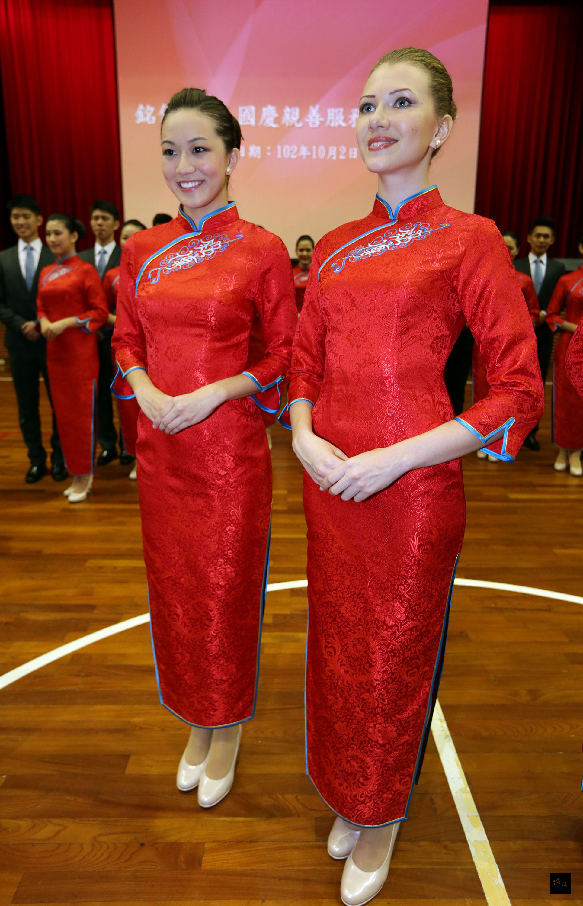 為了國慶服務,銘傳服務隊事先訓練3個月。銘傳大學財務金融系學生廖曼利說,每周訓練兩到三次,甚至曾從上午8時訓練到晚上8時,加上穿高跟鞋,非常辛苦。