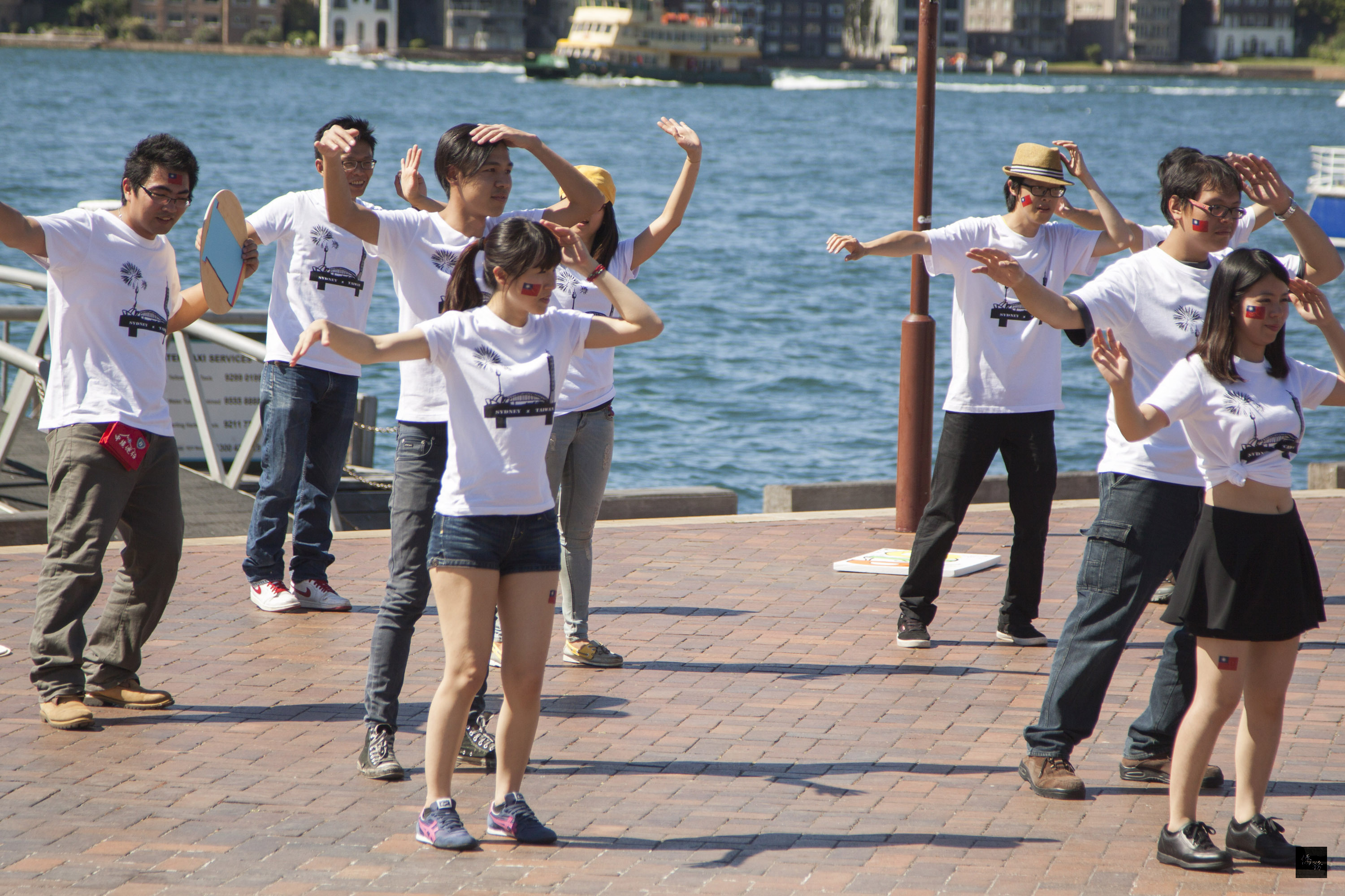 雪梨當代美術館位於市區的環形碼頭(Circular Quay),在知名的雪梨歌劇院附近,台灣青年的表演在川流不息的人潮中,顯得格外吸睛,路人經過紛紛駐足欣賞。現場有在雪梨居住多年的台灣民眾表示,這項活動讓她感受到台灣人的團結。