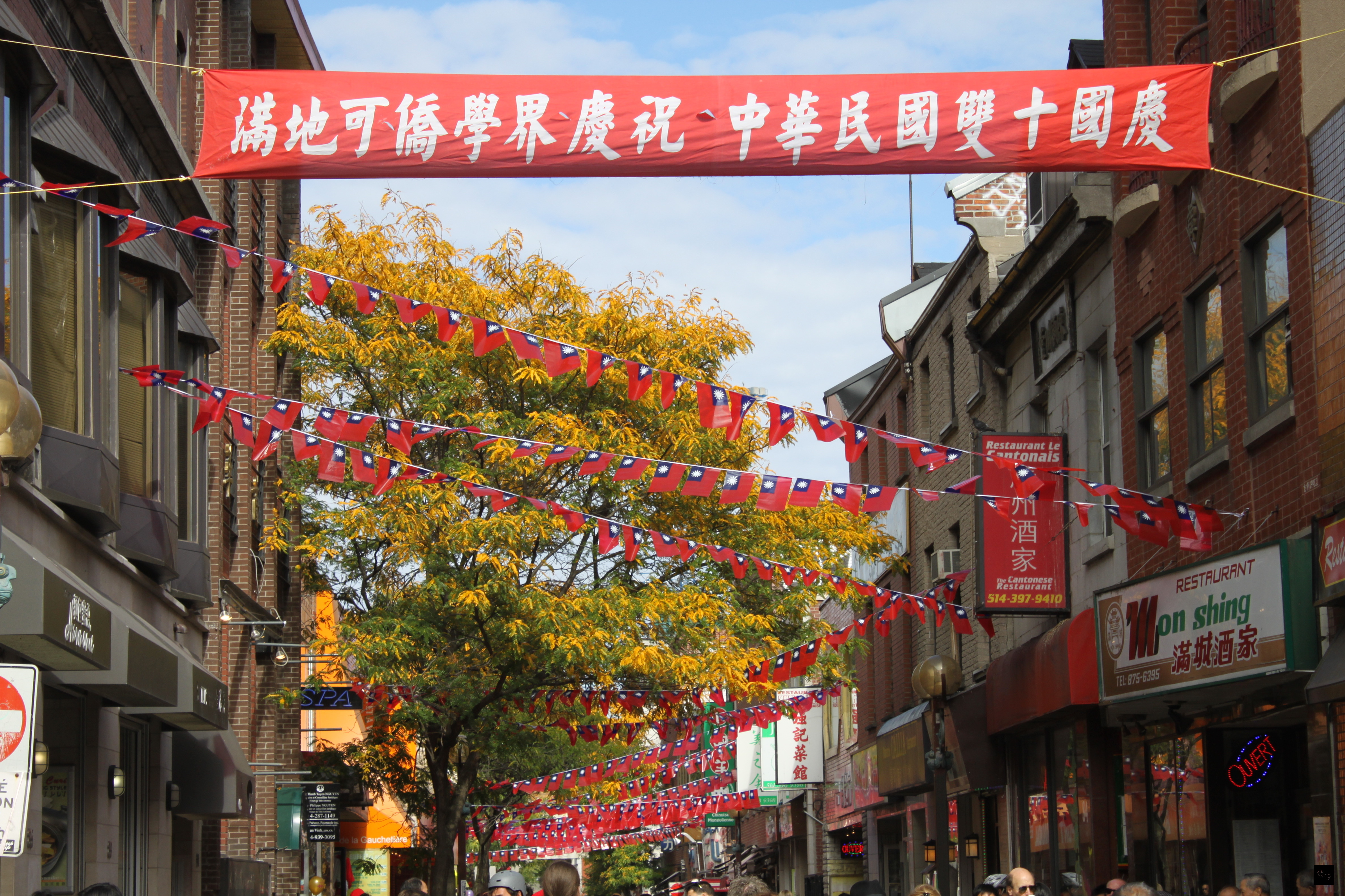 蒙市華埠3日起就懸掛起蒙特婁僑學界慶祝中華民國國慶的橫幅,並沿著主要街道掛滿中華民國國旗串旗,展現普天同慶、薄海歡騰的熱烈景象。升旗典禮5日在中山公園舉行,這也是這次國慶大會的創舉。大會在司儀僑務顧問周志偉及僑務促進委員趙家笙帶領全場高唱加拿大及中華民國國歌後,青天白日滿地紅國旗在國旗歌聲中冉冉升起,場面莊嚴隆重。