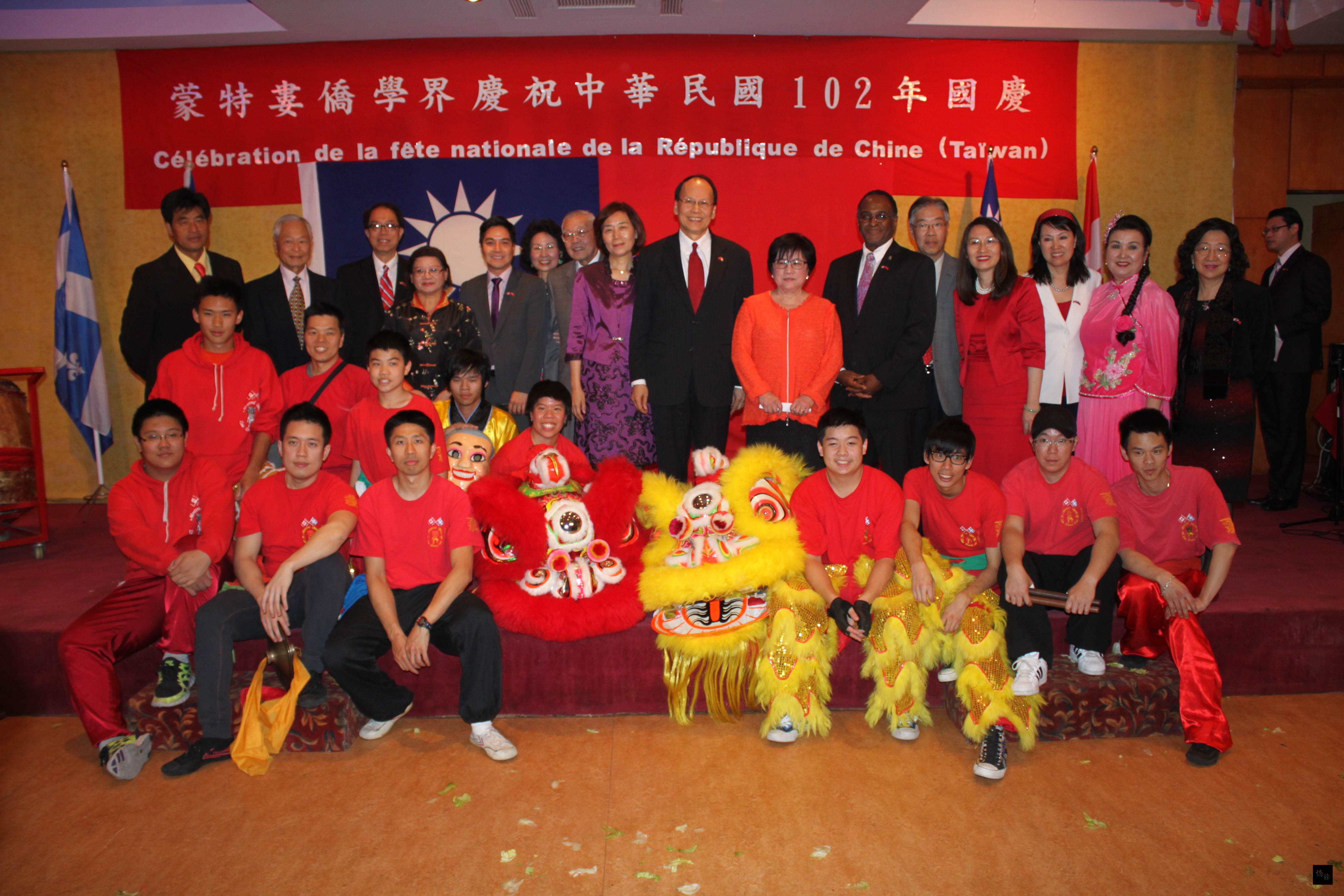 當天晚間的全僑慶祝國慶餐會,共有滿地可中華會館、李氏公所、黃雲山公所、譚光裕堂、譚源源堂、 昭倫公所、華僑協會蒙特婁分會、夢翠鷗台灣同鄉會、魁北克榮光聯誼會、魁北克台灣工商文化協會、蒙特婁台灣商會、加拿大東方藝術協會、魁北克台灣青年專業協會、魁北克中醫藥針灸學會、台灣大專旅蒙校友聯誼會、蒙城中華語文學校、博爾沙中文學校、國際佛光會滿地可分會、久久長青團等20多個僑團、近400人參加,加拿大聯邦國會新民主黨籍眾議員Hoang Mai 及Tyrone Benskin也應邀出席。