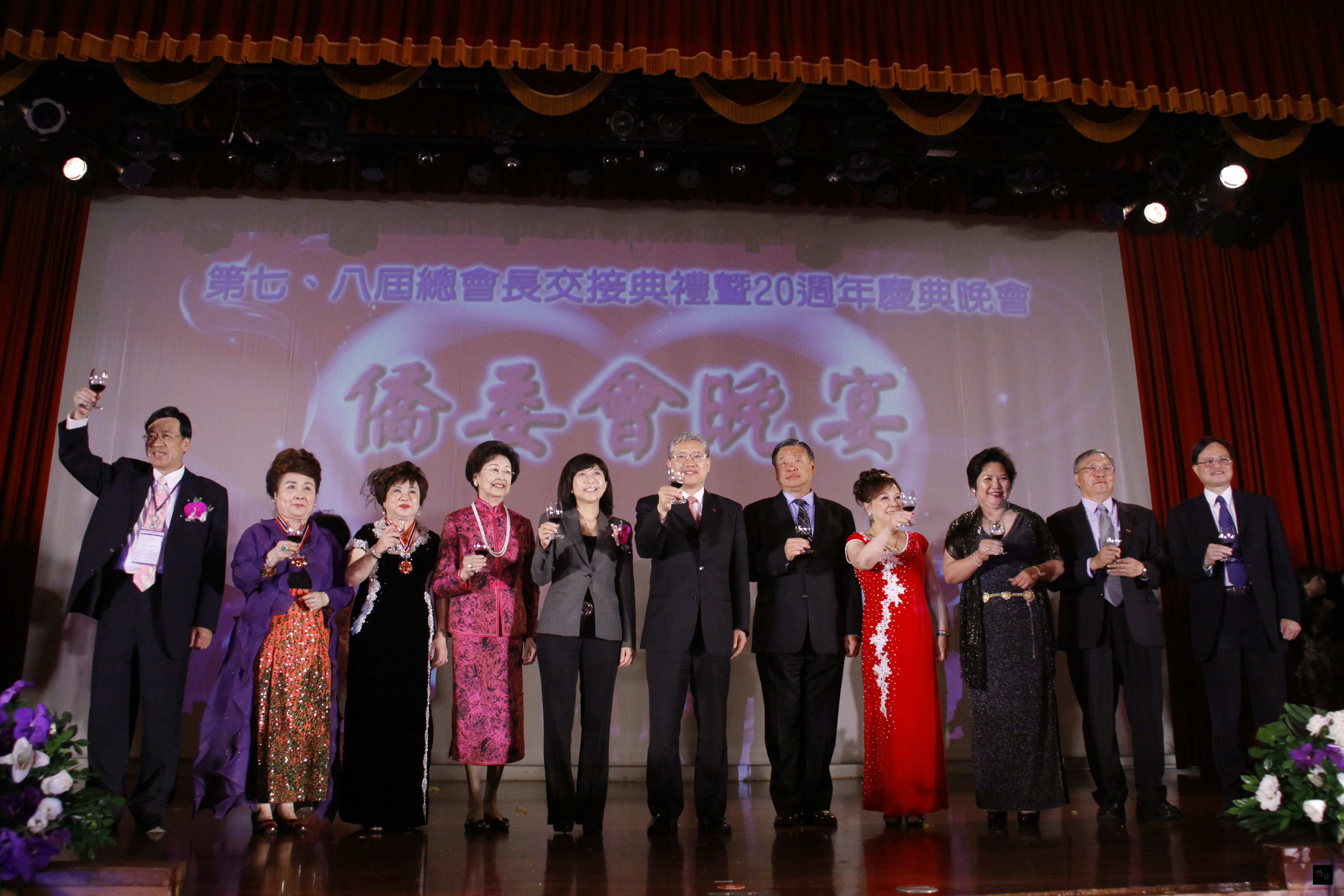 14日的「第七、八屆總會長交接典禮暨20週年慶典晚會」中,僑委會委員長陳士魁、副委員長陳玉梅、呂元榮及主任秘書張良民、內政部次長蕭家淇都出席與會。陳委員長致詞時肯定世華企協團結全世界華商婦女,成為僑社及國民外交的重要力量。在總會長施郭鳳珠帶領下,總會成員也回饋愛心捐贈復康巴士給多個縣市政府,非常值得敬佩。隨後,他頒贈三等華光專業獎章給施郭總會長及名譽總會長柯杜瑞琴,並頒發僑委會獎牌給出資捐贈復康巴士的協會成員。