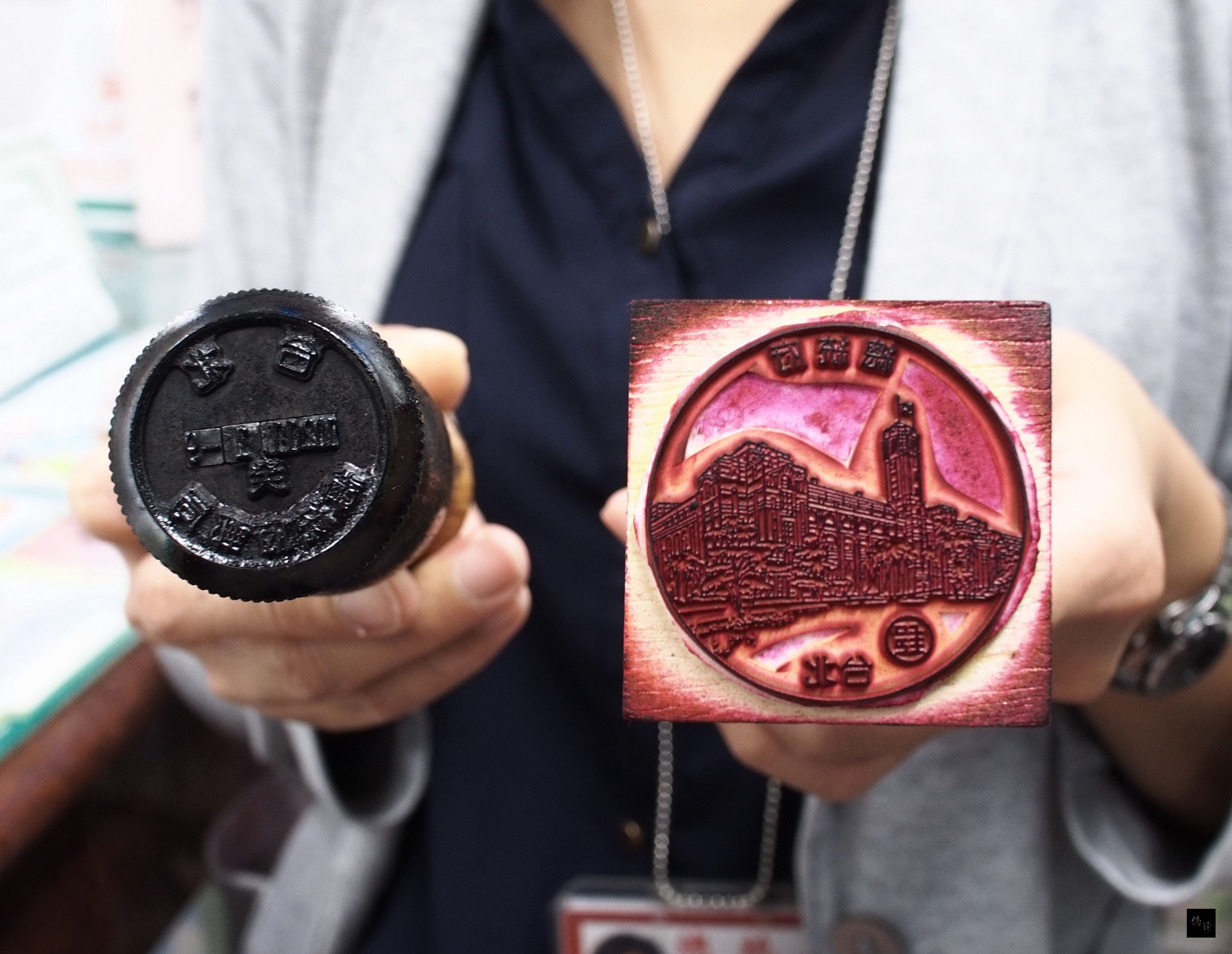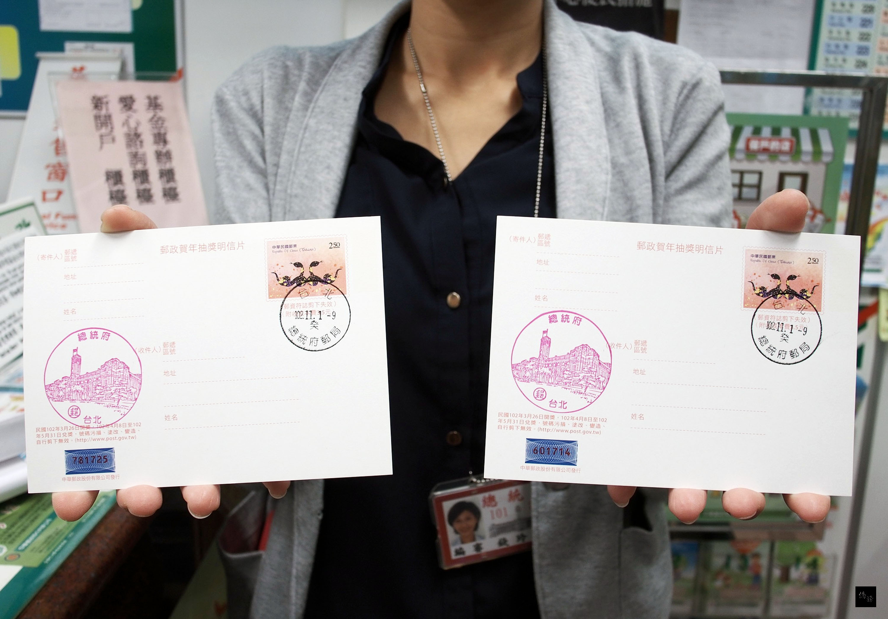 郵局紀念章共有兩顆,一顆是使用桃紅色印泥、蓋出來的圖案是總統府建築物的大紀念章,另一顆則是使用黑色印泥、蓋出來像一般郵戳的「癸章」。