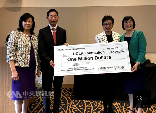 (中央社訊)出身臺灣彰化的旅美企業家楊信今天在加州大學洛杉磯分校(UCLA)宣布,捐出100萬美元支持臺灣研究,他說:「希望下一代更認識臺灣,讓臺灣不只是一個抽象名詞。」