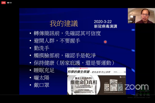 北加州地區雙向影藝會社(TWT)、北美臺灣工程師協會矽谷分會(NATEA-SV)與美洲中國工程師學會舊金山灣區分會(CIE-SF)22日共同以網路視訊方式進行專題演講,邀請加州大學舊金山分校(UCSF)醫學院退休教授林慶順及國際醫藥大學博士班教授葉昭呈談新冠肺炎病毒免疫與診療議題。