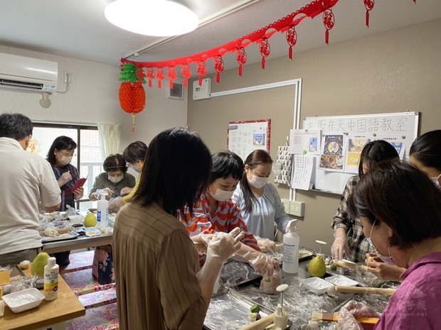 活動大約有20餘人報名參加,由陳洳豔老師教授4種冰皮月餅做法,同時也和參加者分享臺式月餅及臺灣茶,此外,大阪弁天町中文教室為了這次活動也特別訂購臺南文旦,除了向參加者示範文旦切法,同時也讓他們品嚐臺南文旦的好滋味,以及體驗戴上好玩有趣的文旦帽。許多參加的日籍人士對於第一次動手做月餅、吃道地臺式月餅、臺南文旦及品嚐臺灣茶,感到新奇又有趣,也進一步了解臺灣中秋節的特有文化。