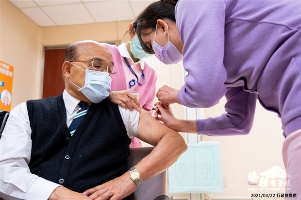 After getting his jab at National Taiwan University Hospital in Taipei, Su told reporters that he felt no pain or discomfort and he hoped the public would follow his lead and get vaccinated.