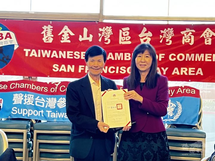舊金山灣區臺灣商會5月19日晚間在Fremont市舉辦會員大會,會中辦理創業投資講座,並發起聲援臺灣加入世界衛生大會(WHA)及跨太平洋夥伴關係協定(CPTPP),金山灣區僑教中心主任莊雅淑、Fremont市議員黃潔宜前往參加,會中莊雅淑並於代表僑委會童振源委員長頒發感謝狀給該會謝鎮寬僑務顧問等,感謝海外許多臺商領袖站出來向CPTPP各會員國提出臺灣加入協定的訴求及重要性。