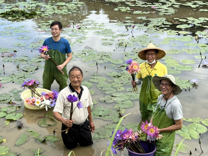 3日林務局、慈心有機農業發展基金會、新北市政府及臺北市立動物園齊聚在阿石伯蓮花田,與參加生態假期的志工一同採收今年首次收成的友善蓮花。許多人捲起褲管第一次走進水田裡,體驗「舉步維艱」、「深陷泥沼」,還有小動物在腳邊鑽動,同時也深刻體會農友種植的辛苦。