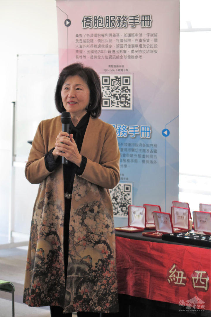 邱亞芬也特別介紹僑委會的相關業務,包括僑胞服務手冊電子書的介紹與使用、i僑卡的申辦與各項優惠。另外也提到僑委會辦理的各類培訓班包括咖啡班、農業商機、語文研習班以及青年子女返臺參加的觀摩團這些相關訊息都會展示在僑務電子報、YouTube頻道,她也會在第一時間將相關訊息分享至僑社各群組,請大家多多關注運用。最後她特別提醒,在2018年1月1日後離臺戶籍被遷出、全民健保被退保,只要在2023年12月31日前返臺恢復戶籍,就可以選擇立刻再加入全民健保,無需6個月的等待期,請大家務必關注自身權益。