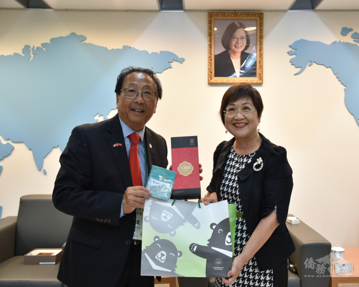 會中僑委會播放僑委會簡介及i僑卡影片,讓僑胞更了解僑委會今年的政策及目標,鼓勵大家踴躍申請i僑卡;意見交流期間僑胞也踴躍提出建言,就健保制度、長照服務、回臺健檢等議題交流。最後,徐佳青及李金生亦互贈紀念品,現場氣氛溫馨融洽。