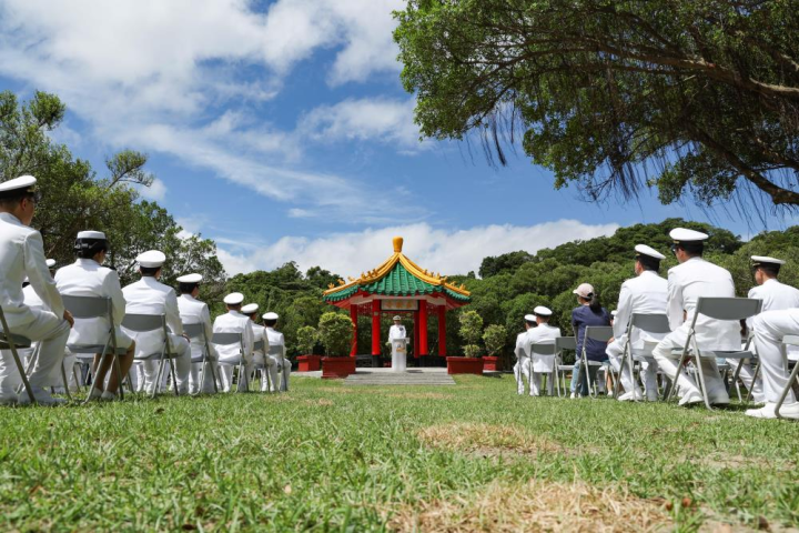 典禮首先由胡副司令布達晉任命令,接續為晉任人員授階,給予肯定與祝福。此次典禮特別於司令部四海潭的「莒光島」舉行,讓晉任人員、觀禮官兵及寶眷一同在湖光山色所環繞的島上,見證榮耀與驕傲的時刻。