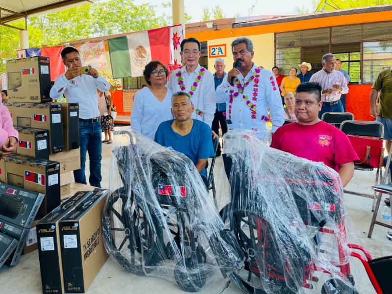 中華民國(臺灣)駐墨西哥代表鄭正勇日前應邀前往聖路易斯波多西(San Luis Potosí)州瓦耶斯市(Ciudad Valles)近郊彼森德葛雷羅(Vicente Guerrero)中學,與墨西哥聯邦眾議員葛雷羅(Antolín Guerrero),共同主持我國捐贈當地資訊設備和身障輔具計畫的物資贈交典禮。聖州政府教育廳中等教育處處長托雷斯(Francisco Torres)、瓦斯德卡(Huasteca)原民保護區北部教育服務處處長薩拉德(José Zarate)、瓦市教育局局長阿基拉爾(Romeo Aguilar)、中學校長阿爾瓦蕾絲(Juana María Álvarez)、家長會長貝雷茲(Ignacio Pérez)、師生和當地媒體記者等約150人到場觀禮。