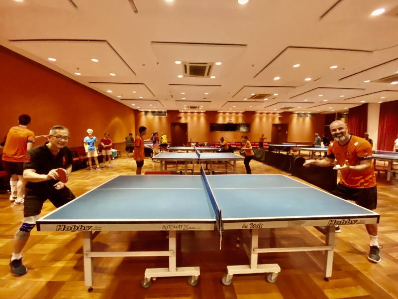梅苑會乒乓球組是由會長黃宗亮、組長周謹民於2017年創立,游淑君擔任總務,每星期一、三、五的5-10點在僑教中心2樓大禮堂練習,聘請教練Alfredo指導,獲得僑胞熱烈的響應,由當初10幾個人參加,增長到今天有40幾位。為了使球技更精進,特別邀請軍警傷協於殘奧比賽獲得冠軍的球員來互相交流,這是一次難得機會,當日愛好打乒乓球的僑胞踴躍來共襄盛舉,舉行簡單的開球儀式,在司儀游淑君宣布下正式開始。
