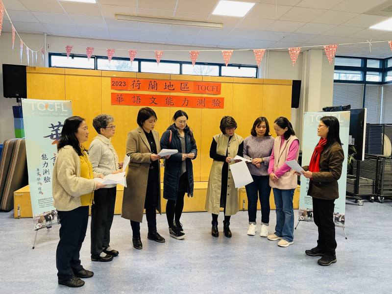 荷蘭地區華語文能力測驗(TOCFL)11月18日在荷蘭海牙臺北學校舉行,本年總計有75人報名,實際到考人數74人。駐歐盟兼駐比利時臺北代表處教育組秘書林雅婷、助理陳蓓蕾與荷蘭海牙臺北學校校長鍾啟元、副校長鄭月鳳親自到場主持試前會議及考前相關作業,駐荷蘭代表處僑務秘書楊海華也特別到場致意,感謝各監試老師的支持與協助,並為與試的學生加油打氣。