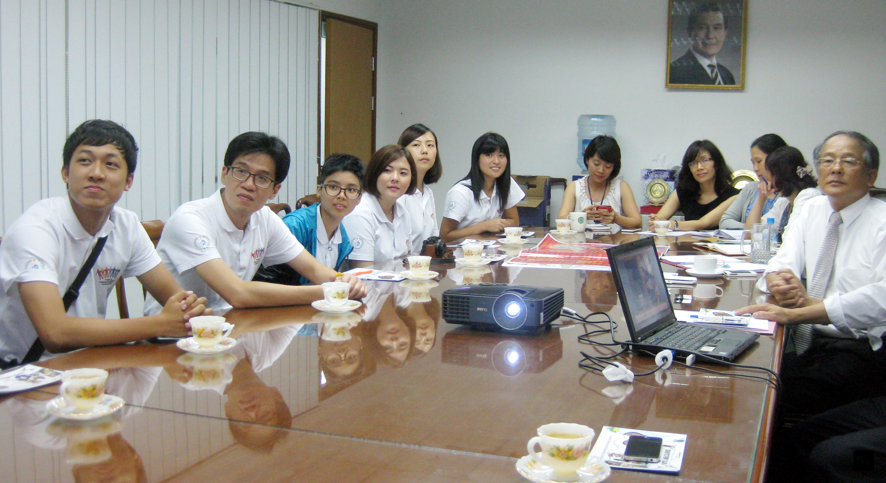 青使團12日下午拜會駐越南辦事處,由駐越代表黃志鵬親自接待。黃代表熱烈歡迎青年大使團訪越,慰問團員辛勞,並勉勵青年大使們充分利用交流機會,向越南師生介紹台灣文化之美。