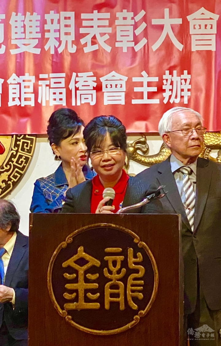 駐洛杉磯辦事處副處長張正育致詞表示,父母是建構一個家庭的基礎,非常榮幸參加中華會館福僑會所舉辦的這一場別具意義的活動。以往只有中華會館各公所舉辦雙親節活動,今年福僑會特別盛大舉辦這個優秀雙親表彰大會被,弘揚華人重視家庭倫理及尊崇孝道的優良傳統文化。張正育最後也期勉現場的所有人也都能藉由當天這個有意義的活動,感謝父母的養育之恩,見賢思齊、孝順父母。