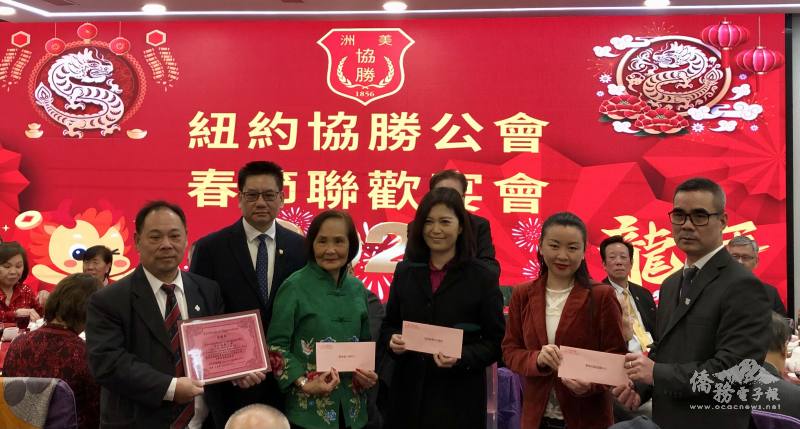 美洲協勝公會及紐約協勝公會長期支持紐約華僑學校辦學,以及華埠兒童培護中心照顧兒童,在春宴上也特別再度捐款給紐約華僑學校及華埠兒童培護中心,由學校校長王憲筠、中心主任李小愷代表接受。