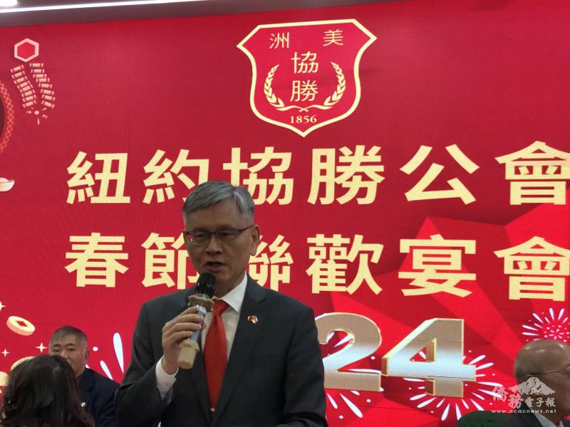 紐約協勝公會依照傳統慣例在大年初七2月16日舉辦龍年春節聯歡晚宴,席開40多桌邀請華埠各大僑團領袖及會眾共襄盛舉,駐紐約辦事處處長李光章與副處長張俊裕、副處長張麗賢、紐約文教中心主任陳永豐、駐處僑務組主任黃儷萱、文教中心副主任王鈺淇等多位同仁應邀出席。