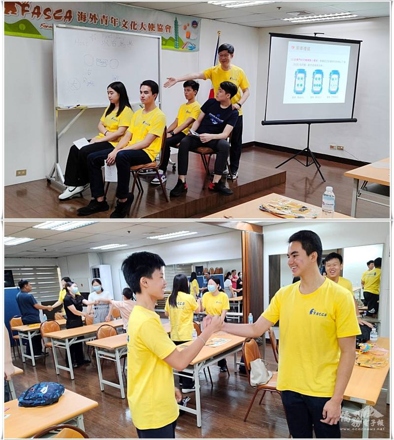 梁崇偉在課程第一階段向大家介紹組成FASCA團隊是以「領導」、「文化」、「服務」與「傳承」為宗旨,並且進一步說明成為FASCA團員的權利與義務,勉勵大家要以成為一位FASCA的成員為榮,因為這是具有領導力與服務僑區能力的象徵。他期盼大家能持續參與FASCA各項培力活動,並且協助招募更多同年紀的同學好朋友們一起來加入FASCA的大家庭。梁崇偉隨後也一一介紹了僑委會所辦理的各項海外青年赴臺營隊,包括了海外青年「英語服務營」、「學習體驗營」、「臺灣觀摩團」以及「語文研習班」等營隊的報名資格、日期與課程參訪內容,歡迎大家與身旁的同學親友們踴躍報名參加。